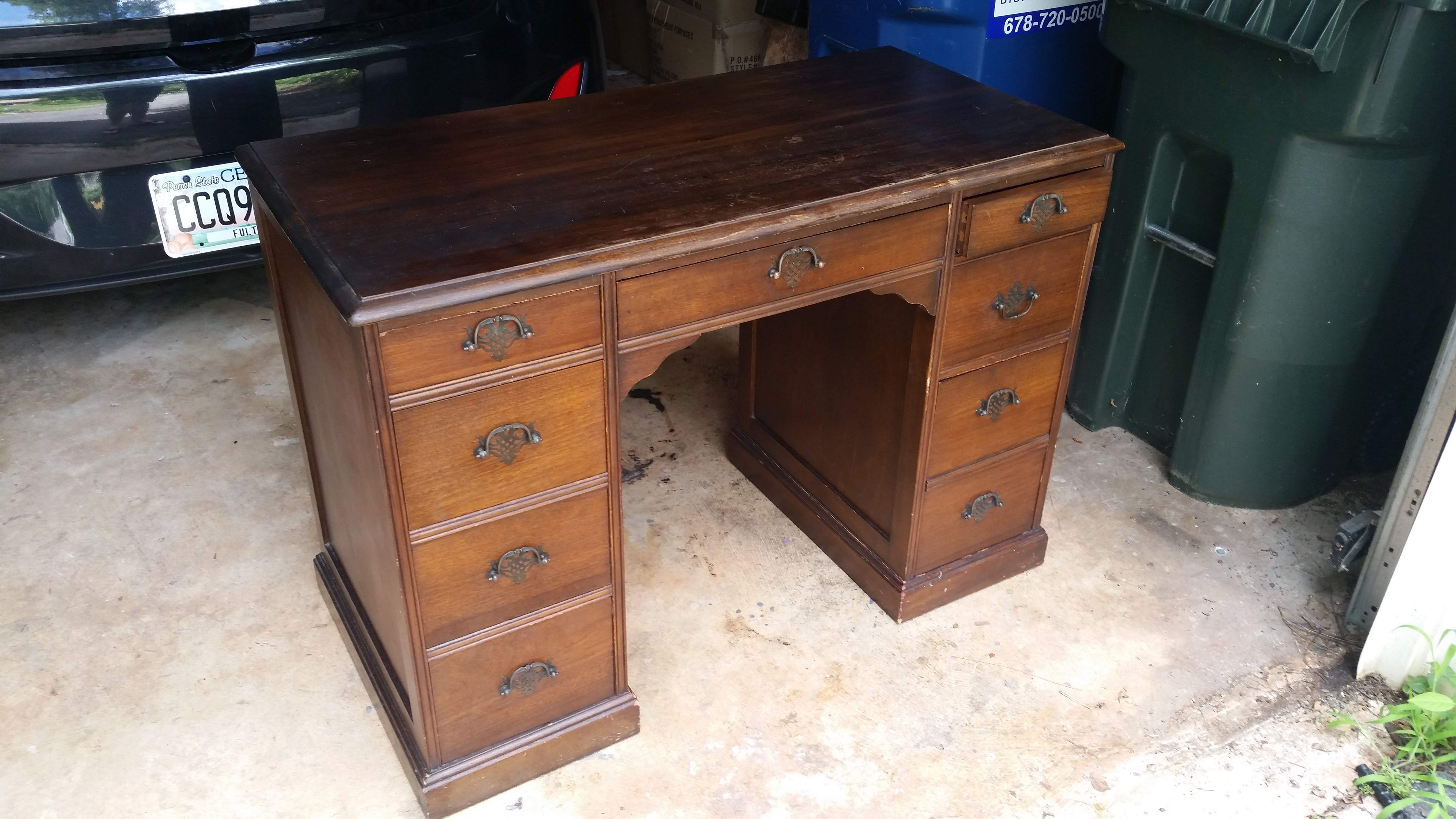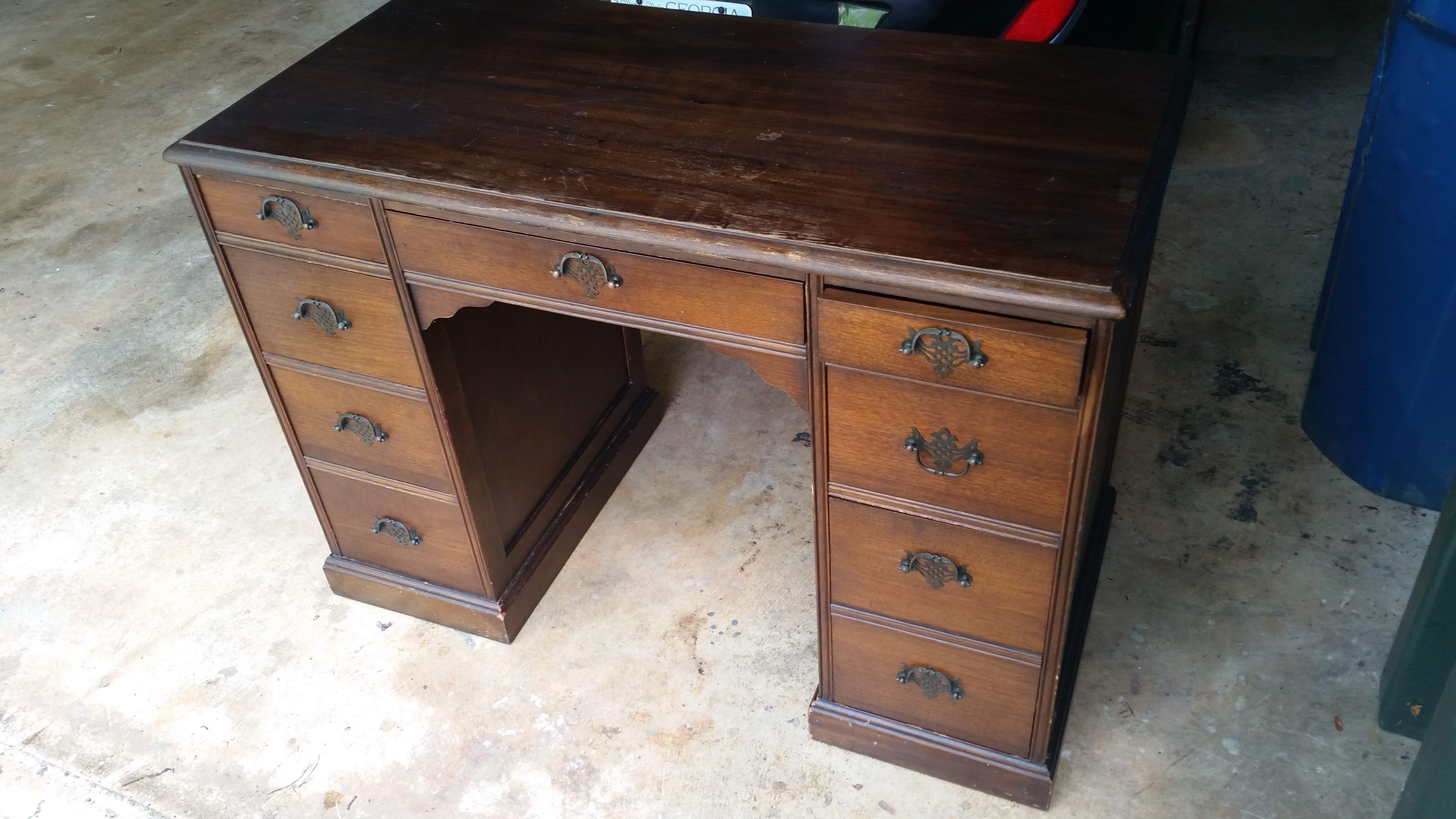 This desk was made by Bay View Furniture Company Holland, Michigan. This company was only in business in Holland Michigan from 1907-1926. This piece is sound, has lower than expected dings for a desk this old. It appears original and has all original hardward. All draws are fully functional and there are no structural defects.
