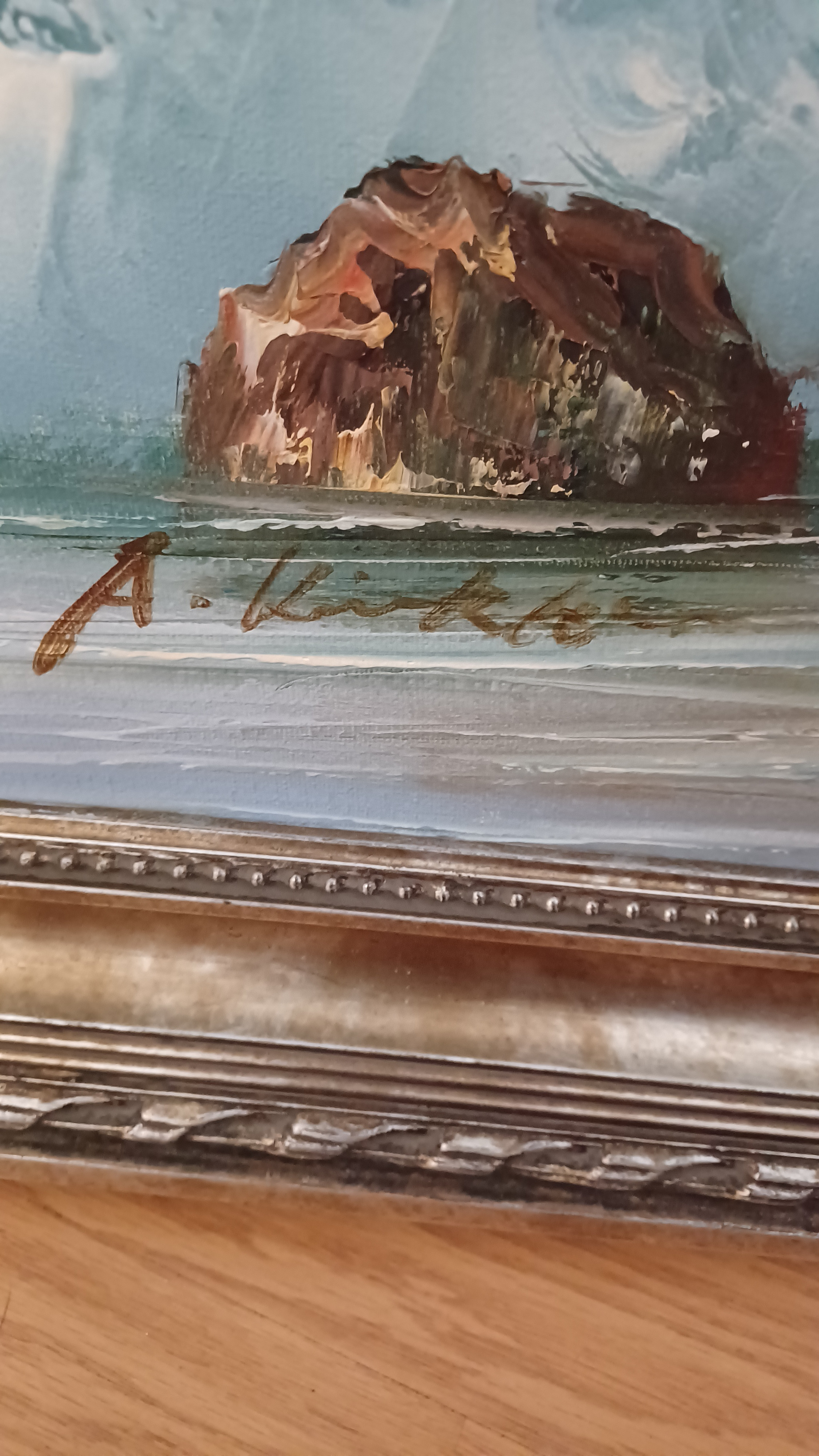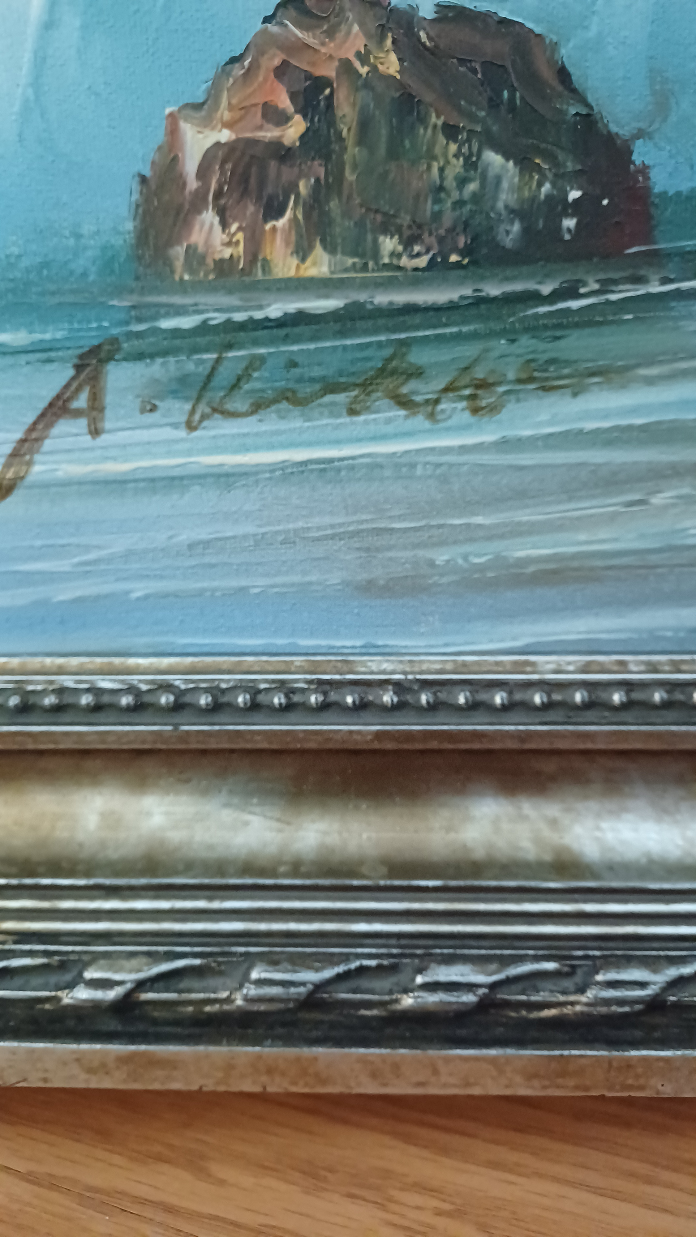 History: The specific history of this individual painting remains unknown without concrete provenance. If it is indeed by A. Kirkham, it likely dates from the mid-to-late 20th century, a period when decorative seascape paintings were highly popular for home furnishings. Works by A. Kirkham were typically sold through commercial galleries, art shops, or distributors, rather than prestigious fine art auction houses, indicating they were produced for a broad consumer market rather than the high-end collector's market.