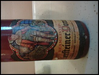 "Beameister 1970" is written on label on upper portion of bottle. Lower portion has label with king holding on left hand a staff with grape vines attached to it and on right hand a sparkling stick with a house or castle on background. The label itself on lower portion says: