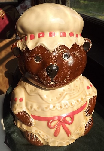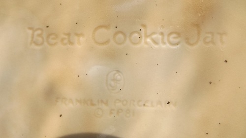 Hello, I am hoping you can enlighten me. I have this cookie jar and cannot find anything about it. We have emailed, talked to and called many. I had one lady (local person we know, swears she is an antique specialist) tell me she gets them all the time and they are worthless. She has not even seen this bear. I would like to know anything, a year, who the maker was, a value, anything helps. I have pictures I could send you. On the bottom it says "Bear Cookie Jar Franklin Porcelain © FP81". Thank you.
