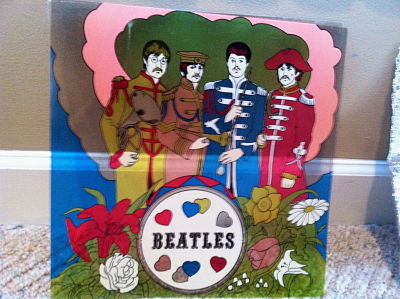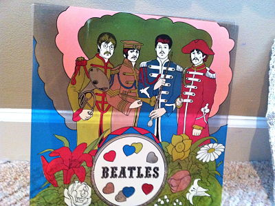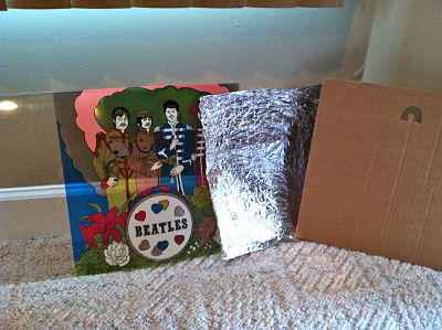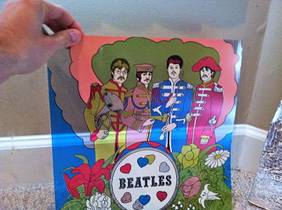 Their are four layers, the cardboard layer, the foil layer, the actual beatles picture layer and finally the heavier plastic layer.