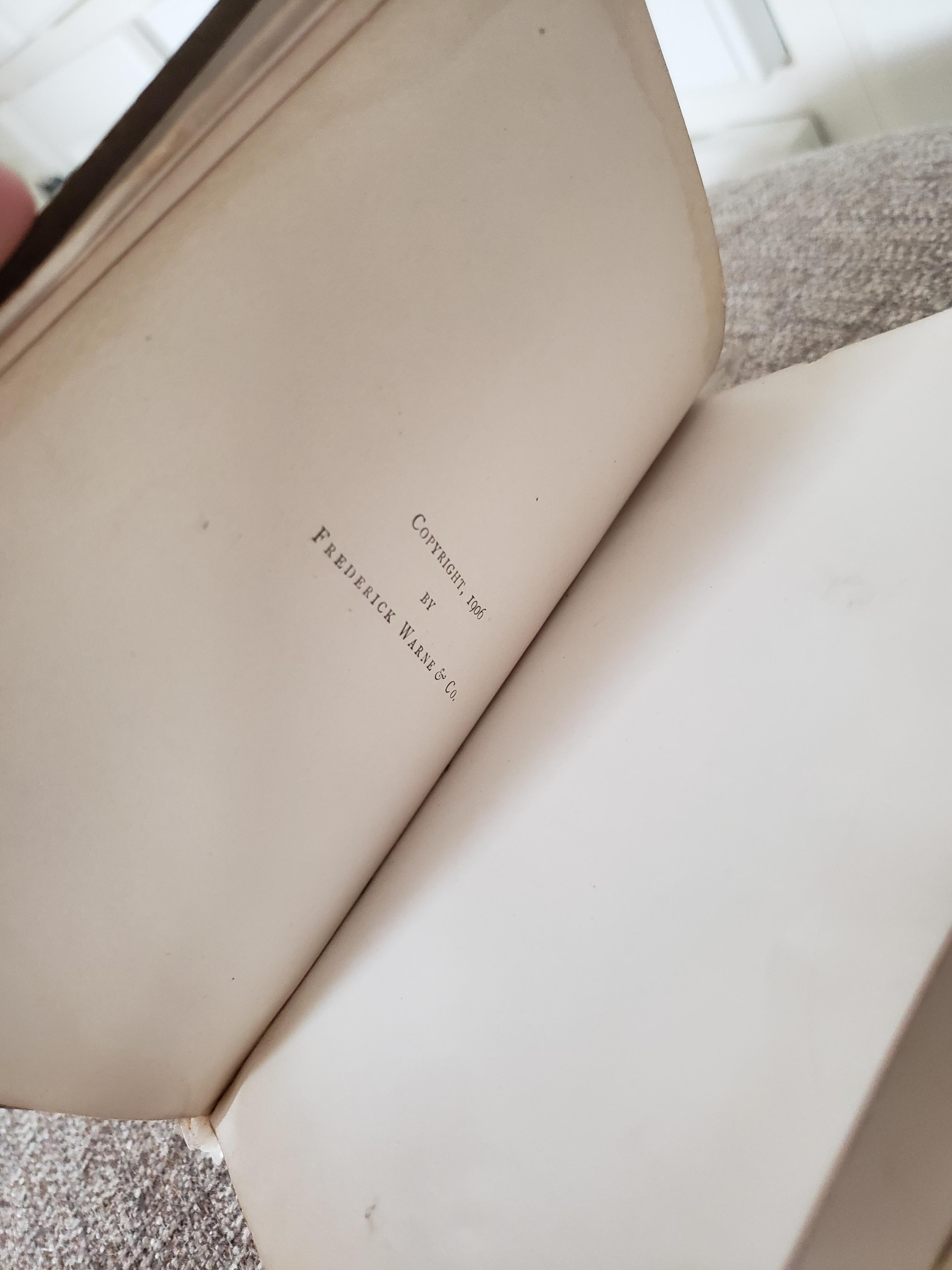 The address of the publisher is "36 East 22 Street", with the Schleuter Press imprint on page [86]: these are points indicating the first printing. Warne, of course, first published the book in London; but, the lithography on this was done in New York City. Having the first issue title-page is very important to a serious collector, but the condition of this copy would be disappointing.