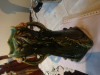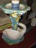 A vase is 19" tall.. please see PHOTOS OF THE BOTTOM FOR MARKING I FOUND ON IT. Has applied birds, flowers and two handles which are made to look like tree vines, It is a beautiful dark blue that has a glaze on it, I know it is old.