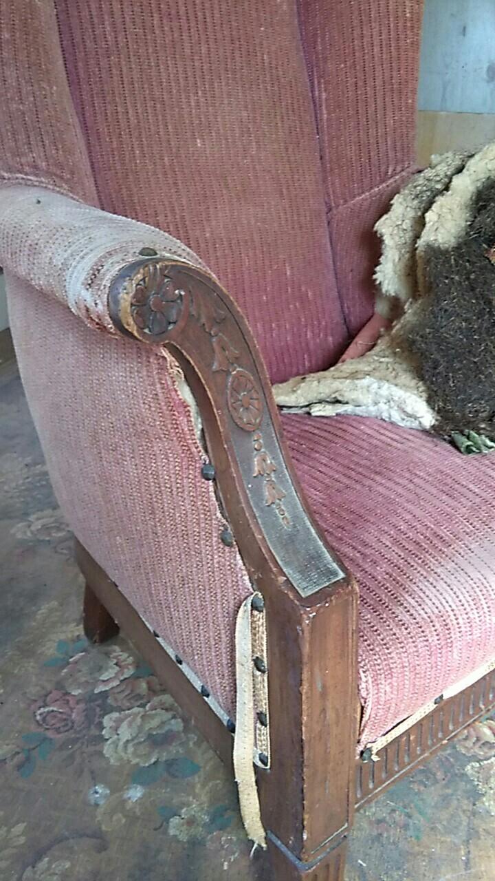 I inherited this chair from an uncle. I have never had it appraised. I would be interested in the time period of this chair as well as an approximate value. I see no visible markings. It appears to be a solid, heavy wood, perhaps mahogany? Thanks for any information.