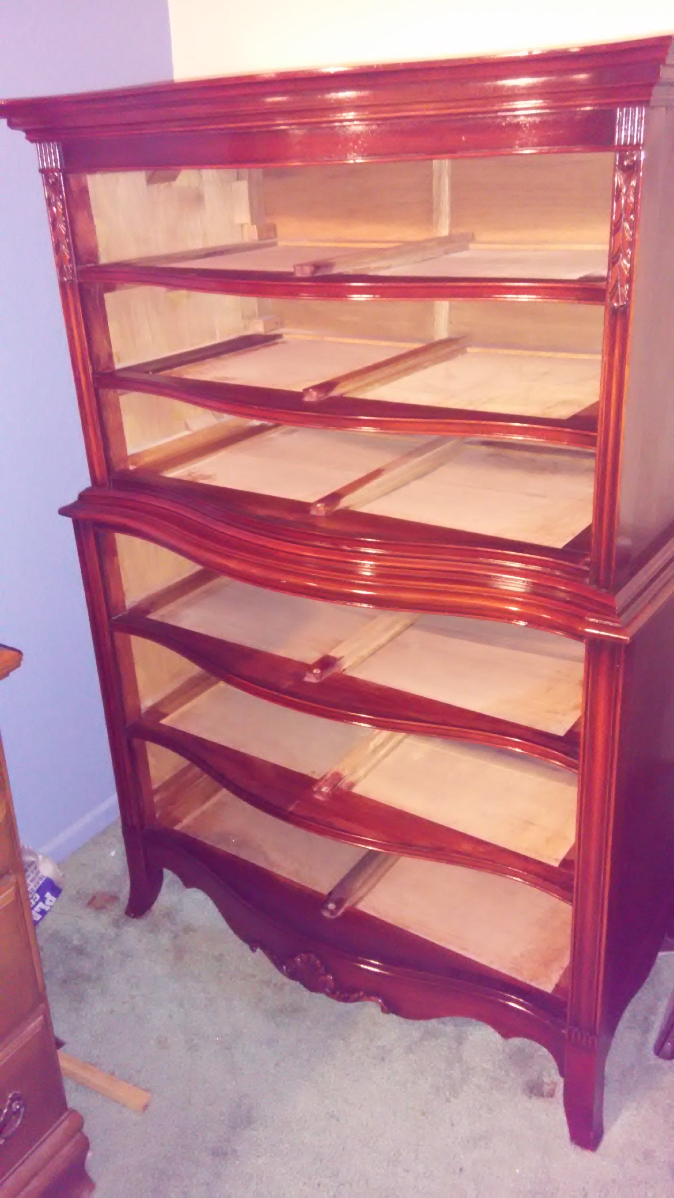 Re: Beautiful antique serpentine dresser