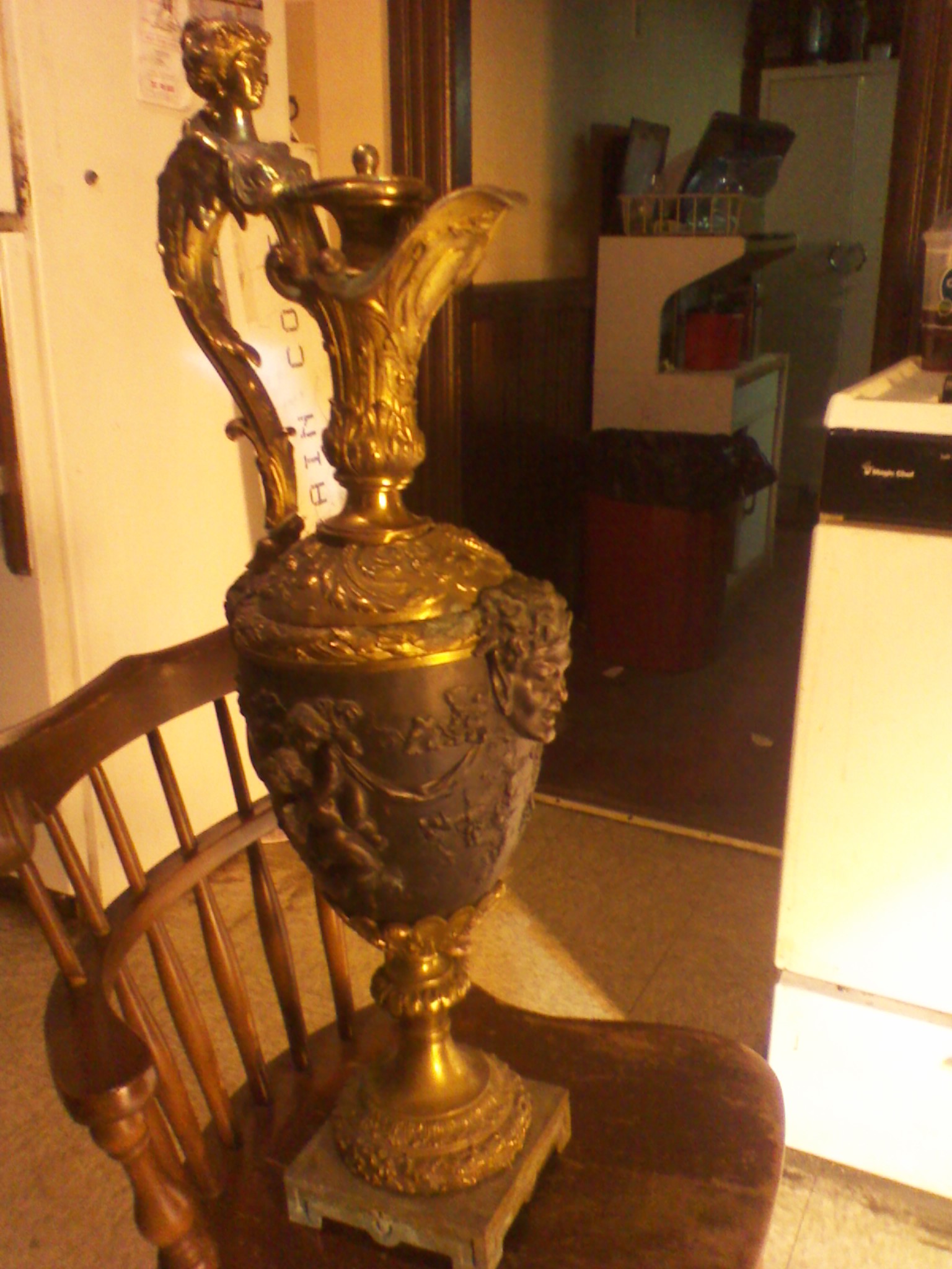 very detailed bronze urn- 2 kinda smiling faces(female)- lots of detailed artwork along the entire piece- was told it was from tibet-any info-value? would be awesome