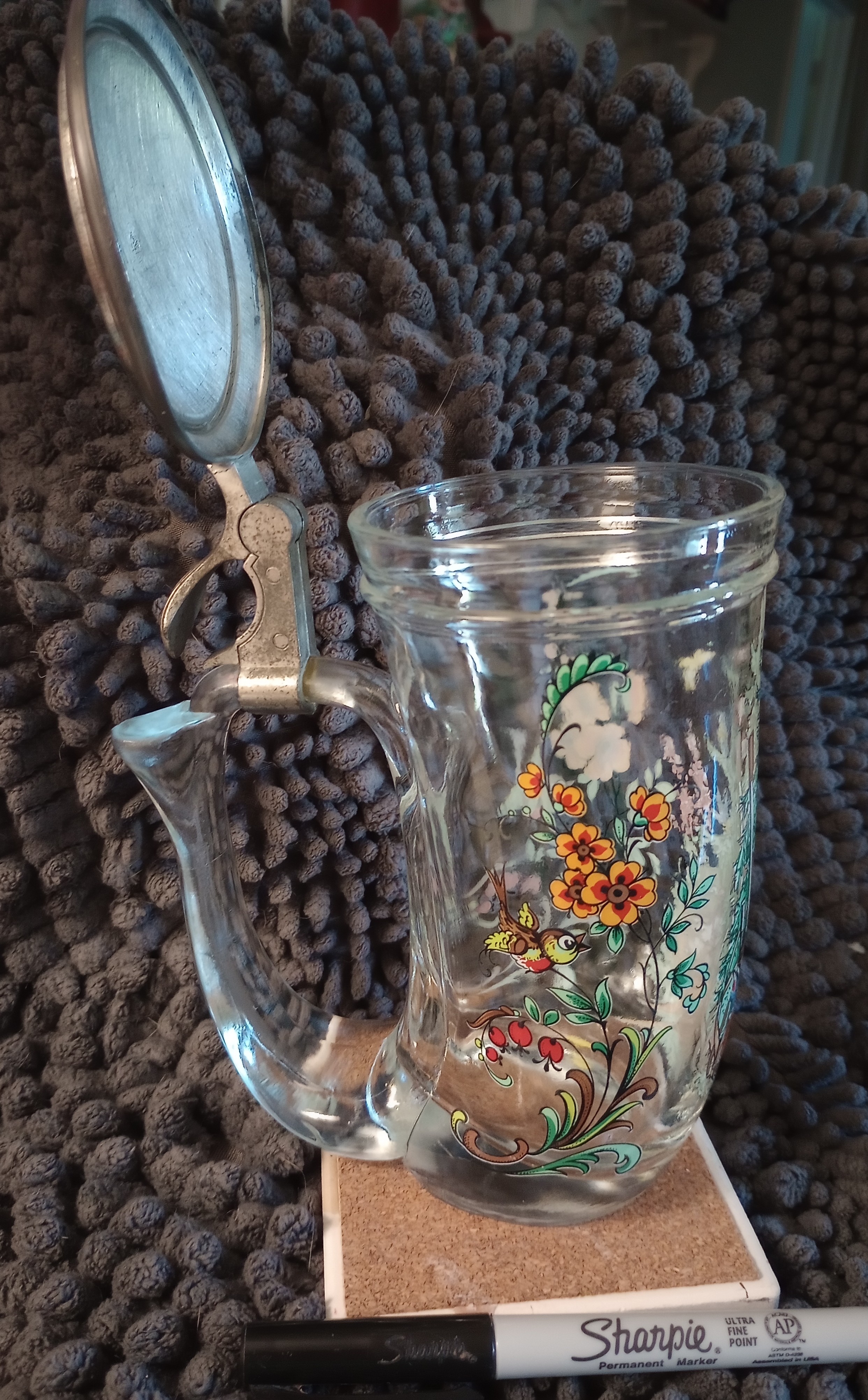 Glass Beer Stein, locking lid.