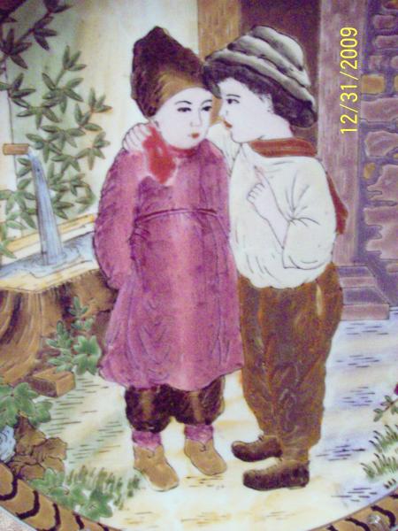 This is a beautiful plate with a rich painting of a Chinese girl and boy & the boy appears to be whispering something to the girl, very cute and unique! I searched the Internet trying to find this piece and was unable to locate it anywhere. As pictured below, there's an inscription on the back of the plate that reads, "China Trader" but there's not much Online regarding the name, that I could find & there's also some type of red emblem embossing as well. There are no scratches or chips and very little signs of wear. I would like to sell it, but I would like to get an estimated appraisal value before I make a decision, because I have no idea what it's worth. I also have other pieces to list, that I could not find Online but if anyone would like to see the pics that I have, then feel free to email me at: [email protected] and I'll be happy to forward them to you. Thanks for your help! ~EA~