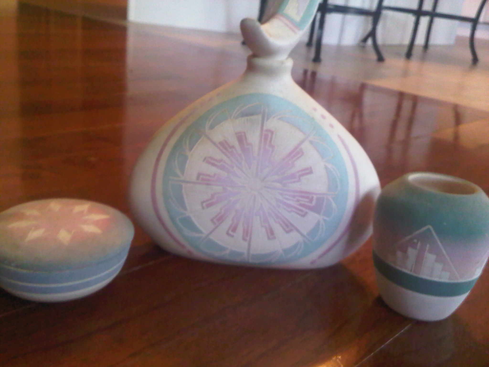 Two smaller pieces signed Hisllelk Slimx?? And the larger piece has what appears to be 3 pyramid's with two lines through them and underlined. They were purchased at an estate sale in Florida 15 years ago.