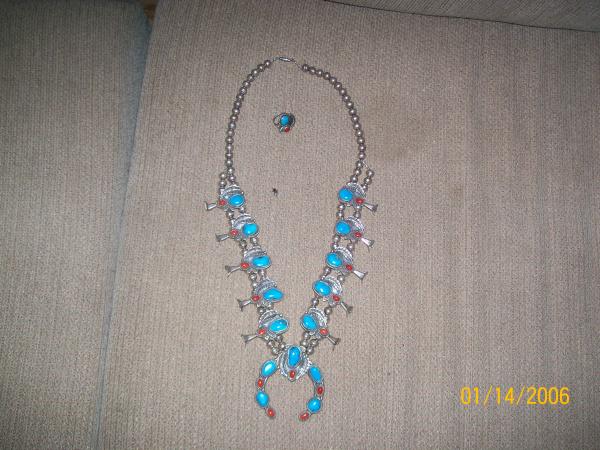 i am trying to find out more about this necklace, possible age and value. i would be intrested in selling it. there is also a matching ring with it. my best guess is it is size 8. thank you for your time and any info you can provide.