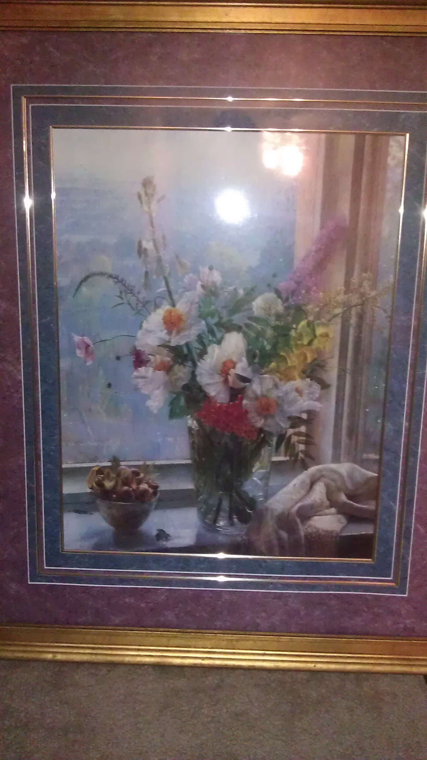 I have this painting that is 34" inches wide and 42" in height. It is at least over 40 years old. It was sold at Krater-Wolf furniture store and has an inspection on the back.. It has the original paper on the back. I have not removed it to see if there was a name or anything. I wasn't sure if I should take off the paper on the back with the inspection number on it.