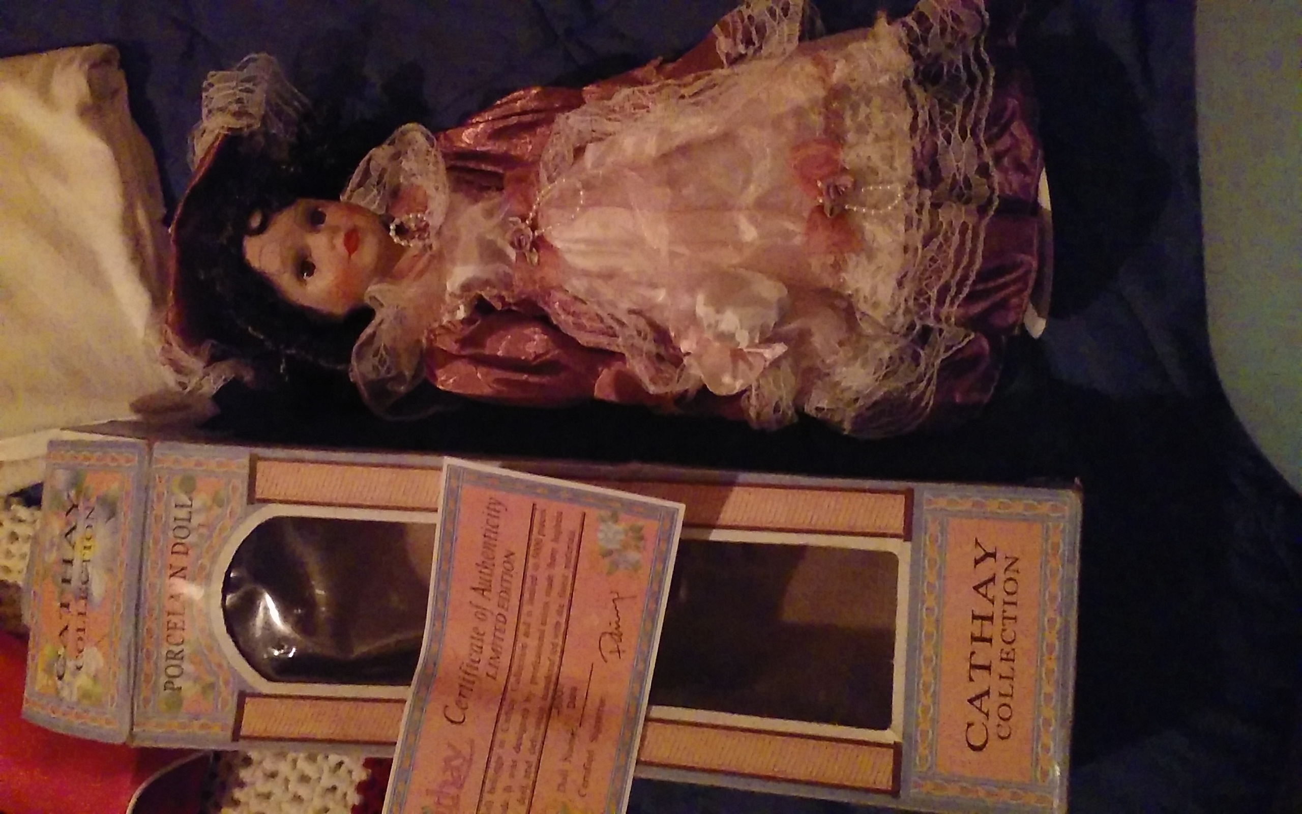 This beaty is a Cathay collection her name is Dara she is 16" tall she is the 23d doll out of 5,000, she also has her certificate of authenticity Limited Edition with a certified singnature thay i cant read sorry.Im looking an appraisal price on her and to sale Thanks.