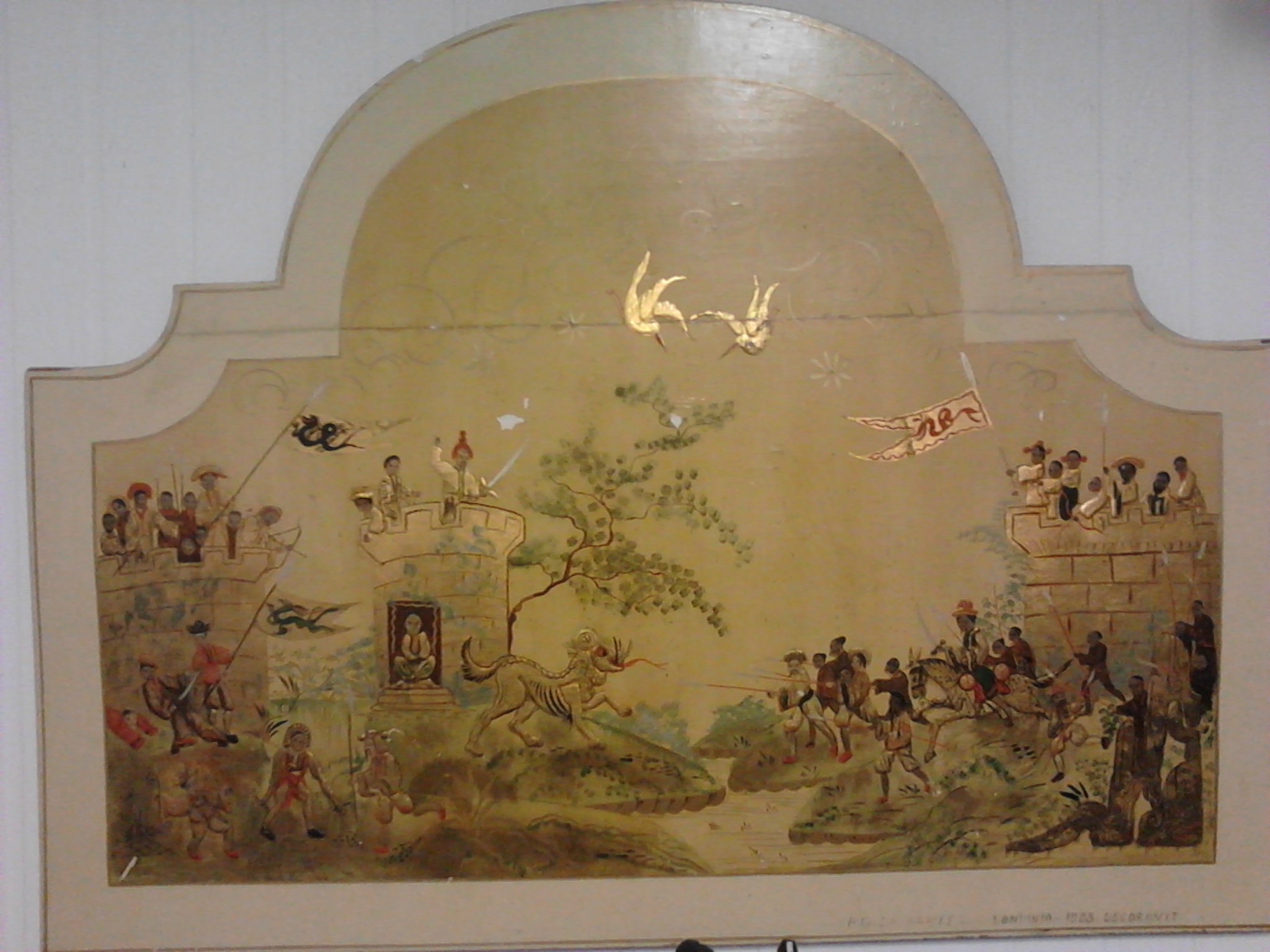 We bought this at a private sale 30 years ago. I believe it i9s a bed head from a 4 poster bed however we seem to only have 2 posts. I have googled the names at the bottom and drawn a blank.......