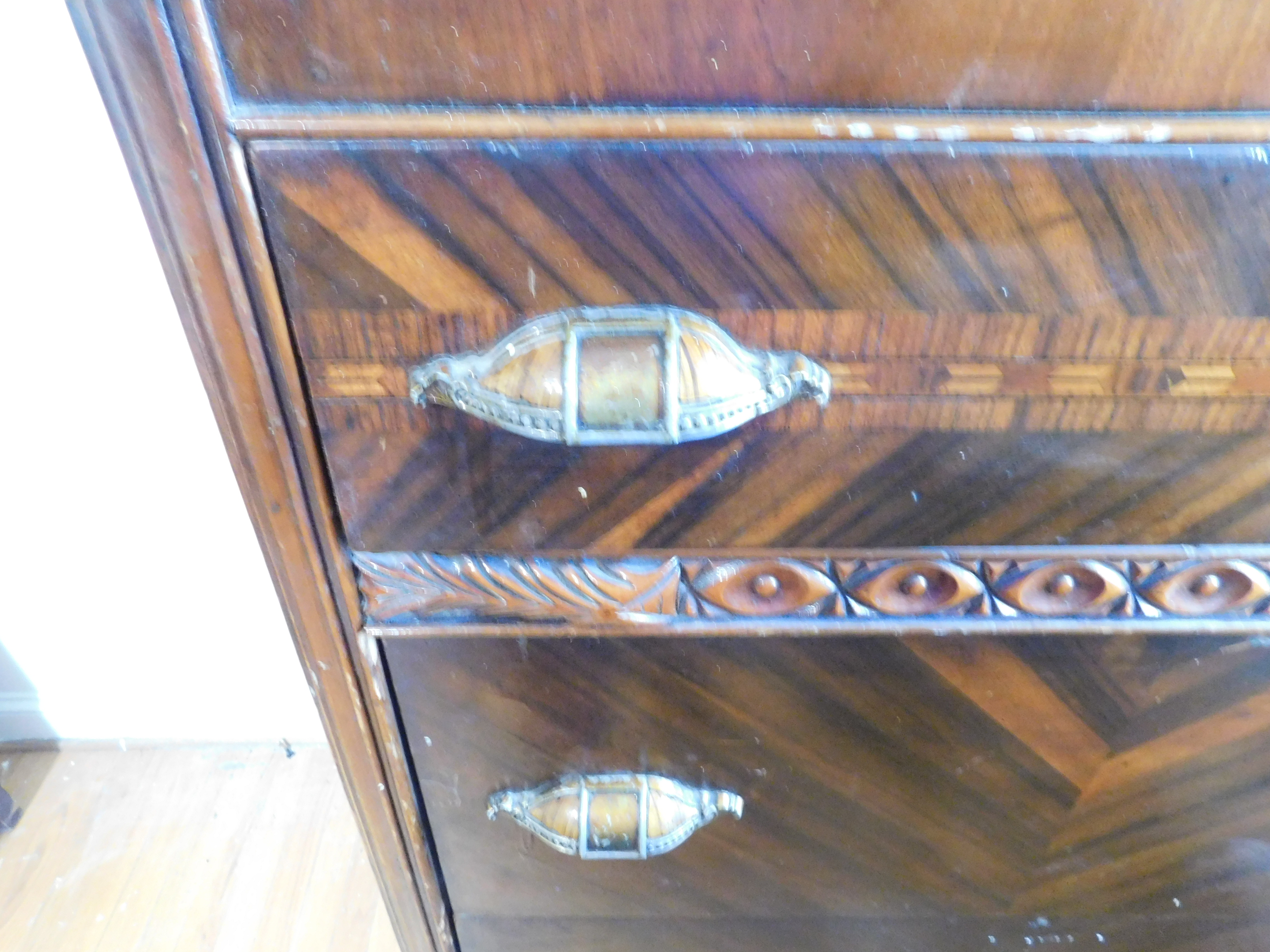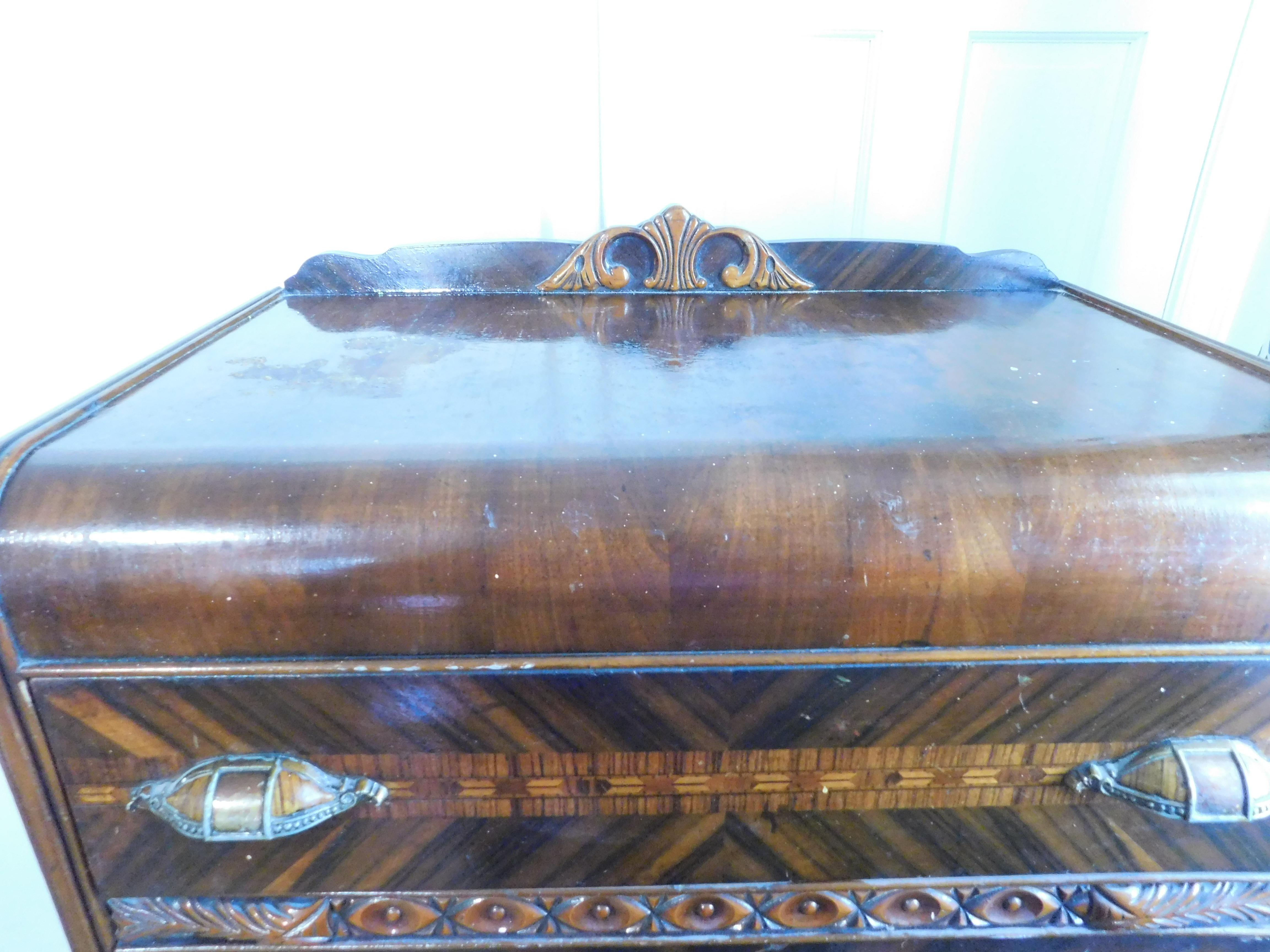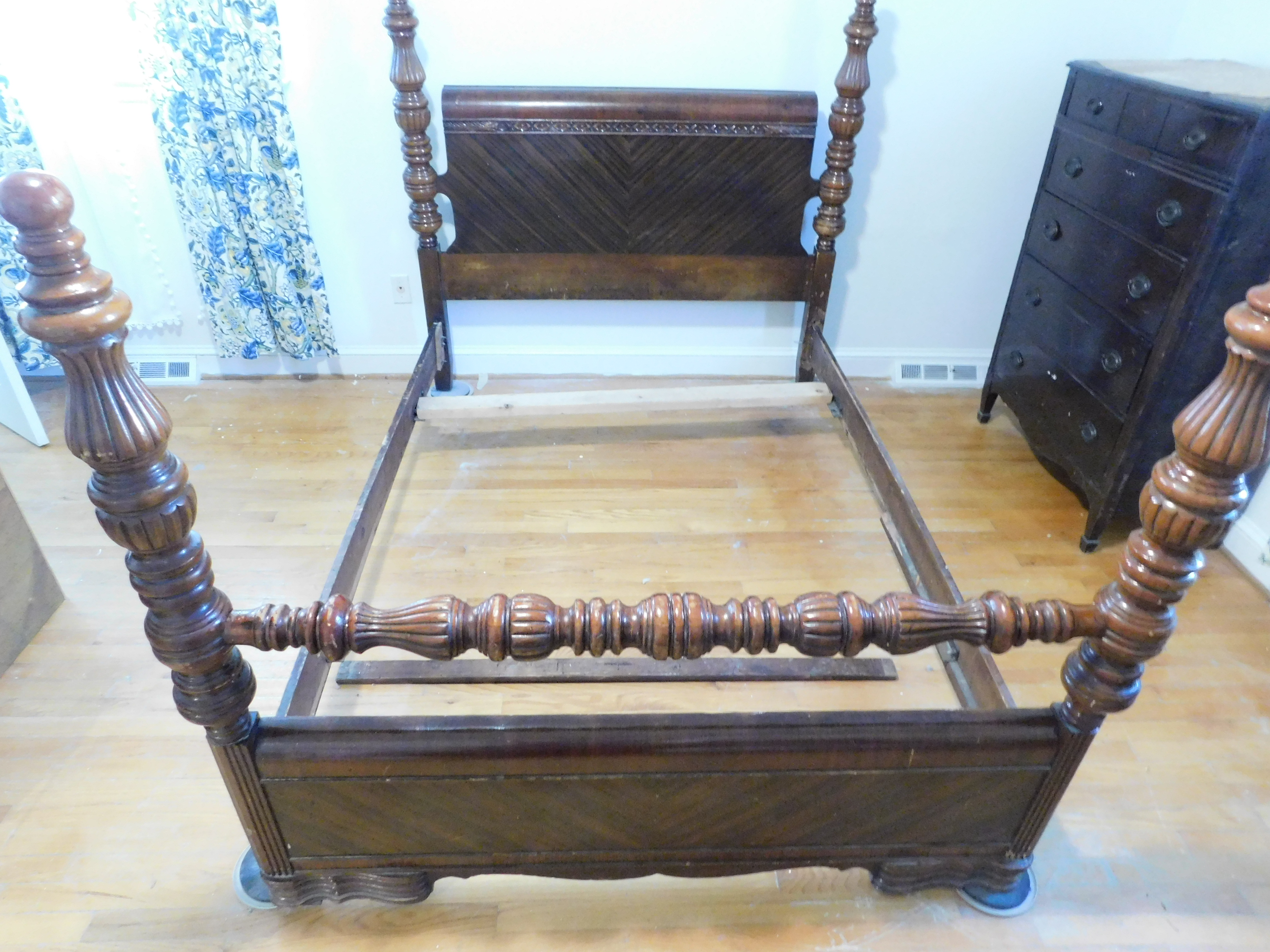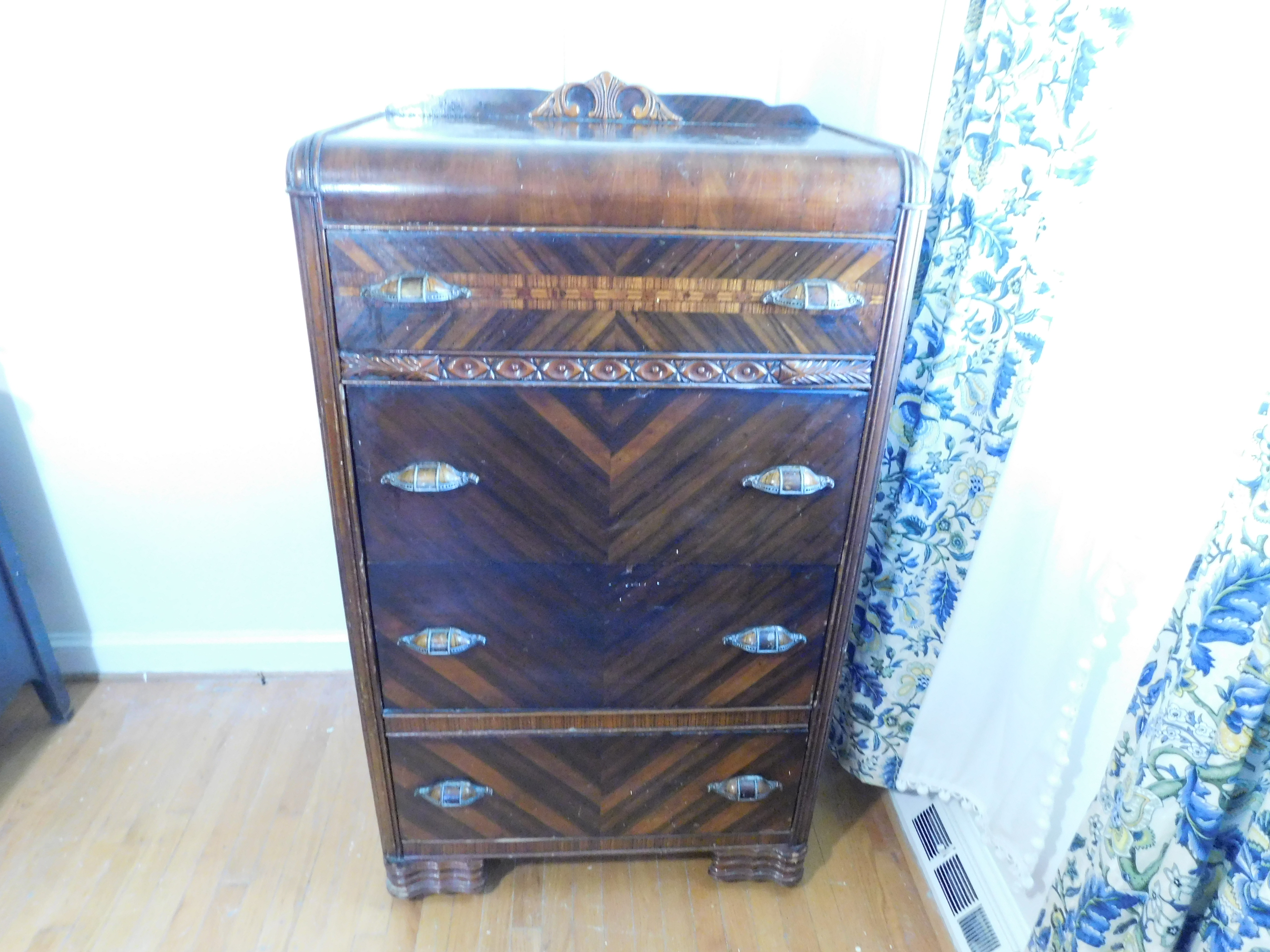 Bed set. Craved egg and dart design. Broke center mirror on dressing table/vanity.
