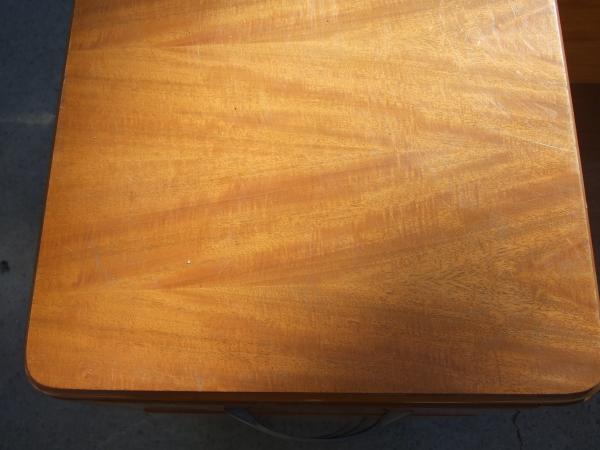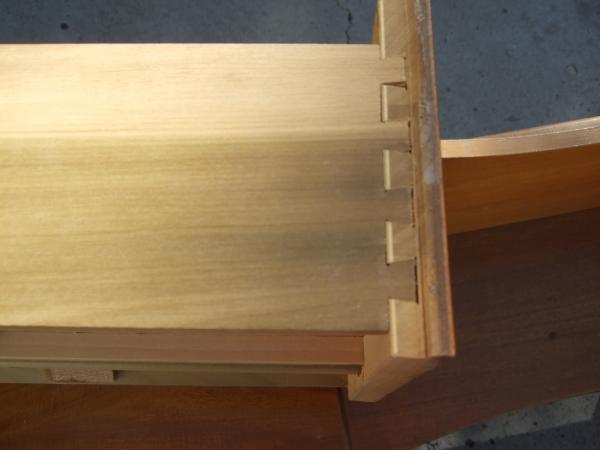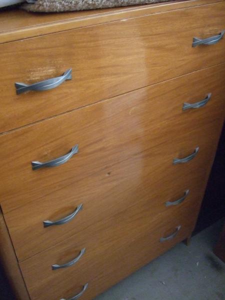 1940'-1950's Thomasville Chair Co. made in USA bedroom set of furniture, Bedframe head/footboard/rails extra long 8" more , tall dresser, Vanity with round mirror, two nightstands. Solid wood, tongue and groove. Golden wood color very nice. some scratches
