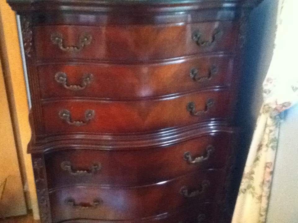 I recently received two bedroom sets from a deceased aunt along with some livingroom furniture. All of it is antique and was expensive when originally purchased. I have so far been unable to find any marking to see where the furniture came from so was hoping you may be able to help me out. I'll attach a picture from a piece of each set to see if you may be able to identify...I'd like to try to find the vale for insurance purposes.