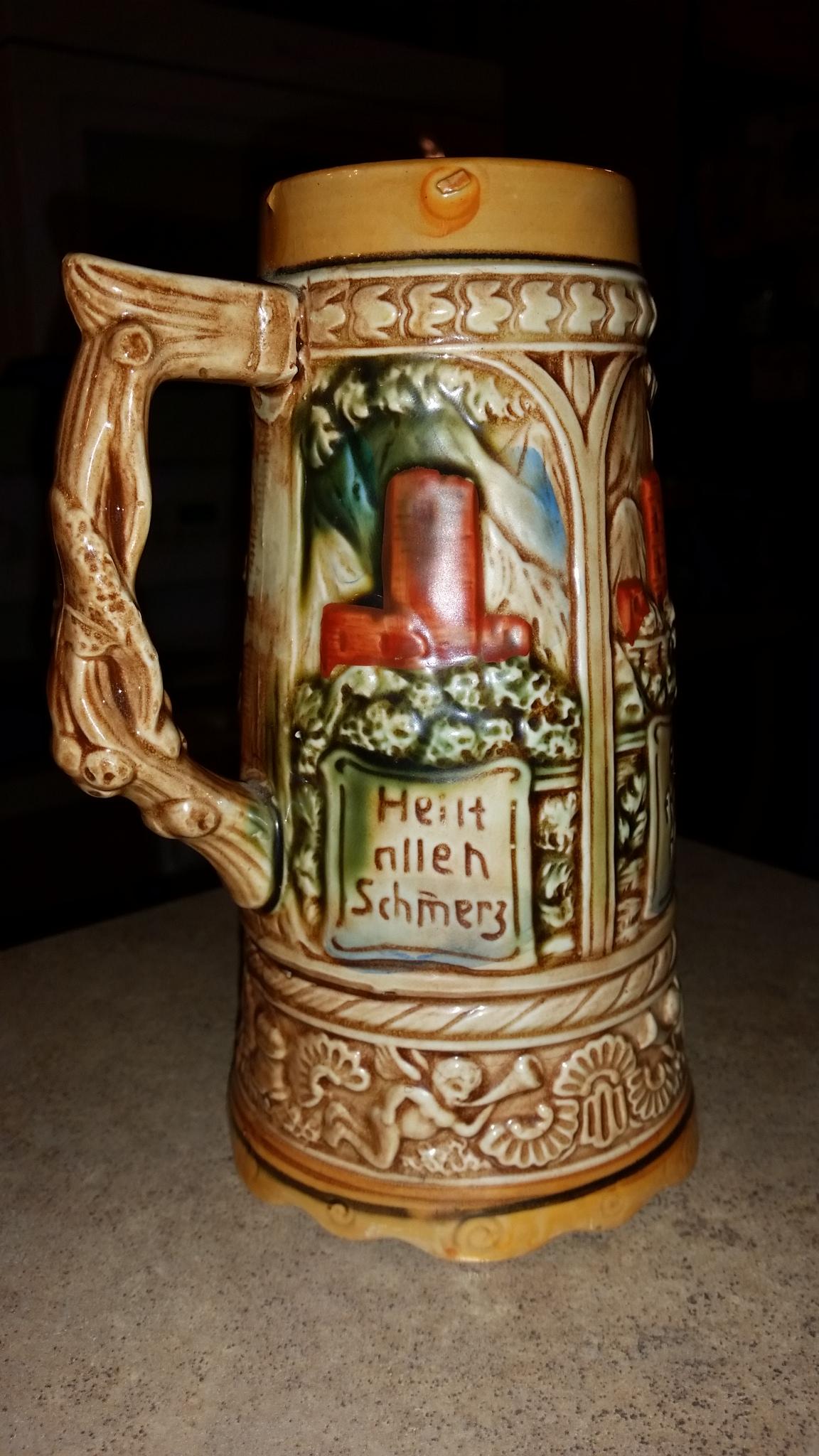 I have seen this design on other steins, but I can't find any that have a music box built into the bottom of the beer stien like this one has. When you wind it up and set it down, there is a switch that keeps it from playing. Then, when you pick it up, it will play a song. Any knowledge would be greatly appreciated.