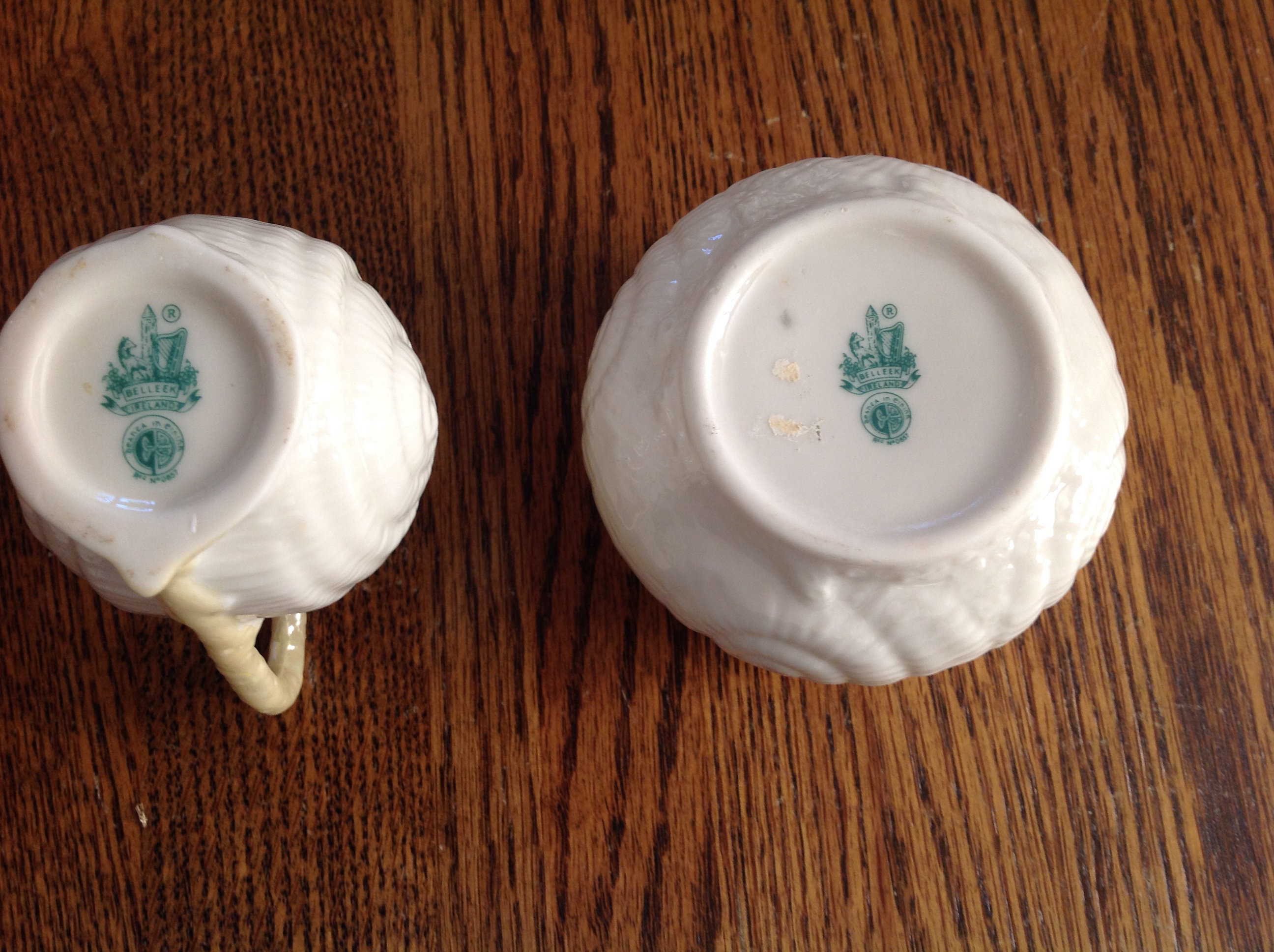 sugar 2.25 hi x 3.5 wide; creamer 3.5 hi x 3 wide
