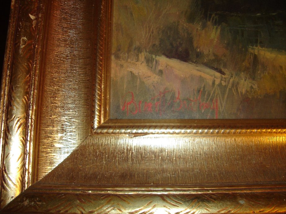I have this picture too. Thanks to you I now know the title.What I have learned about the artist, Bennett Bradbury: He is best known as a California painter and painted pictures of clowns. A listed artist, I just have researched anymore. My picture is in a more ornate frame