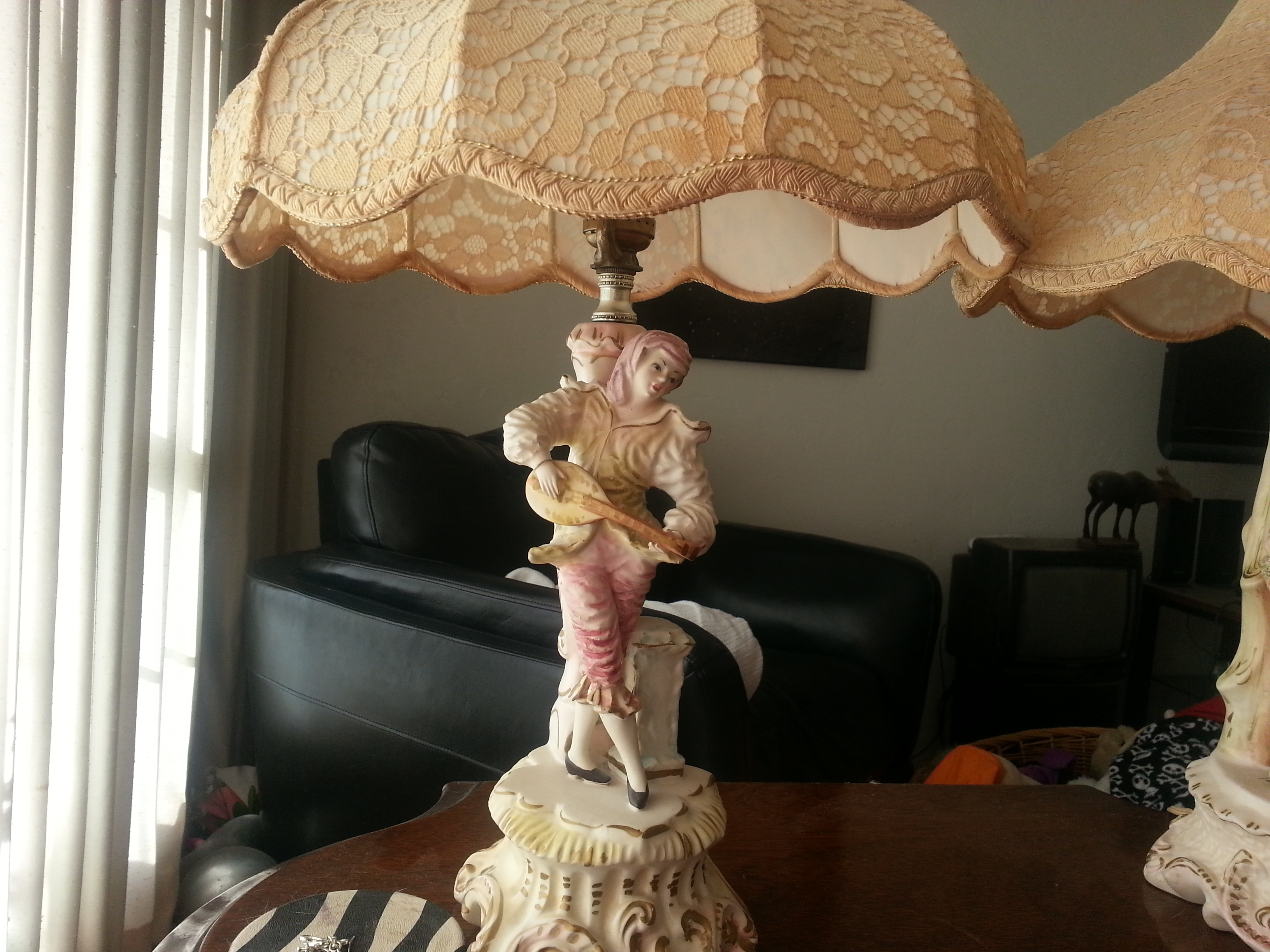 Benrose lamps with shades. Both lamps work. The shades have a few worn spots. The main part of the lamps are flawless. The numbers under each one are f/214 b and f/218 b.