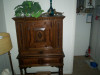 two door cabinet, one drawer with brass handles, carved legs.arched top