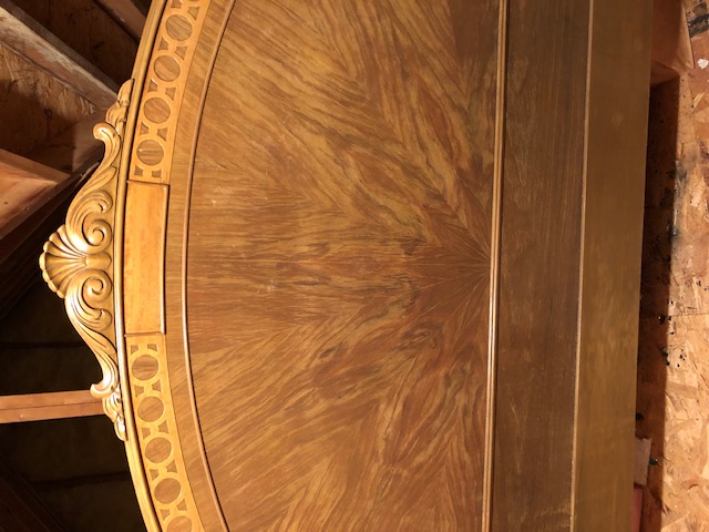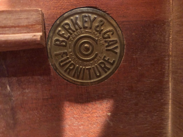 Outstanding 4-piece Berkey & Gay (marked) 1920's-1930's bedroom set. All solid wood made of burled walnut with outstanding wood grained veneers. Includes a full bed (headboard-footboard w/scrolled end detail, night stand, a tall boy dresser and a vanity w/mirror and glass topper.