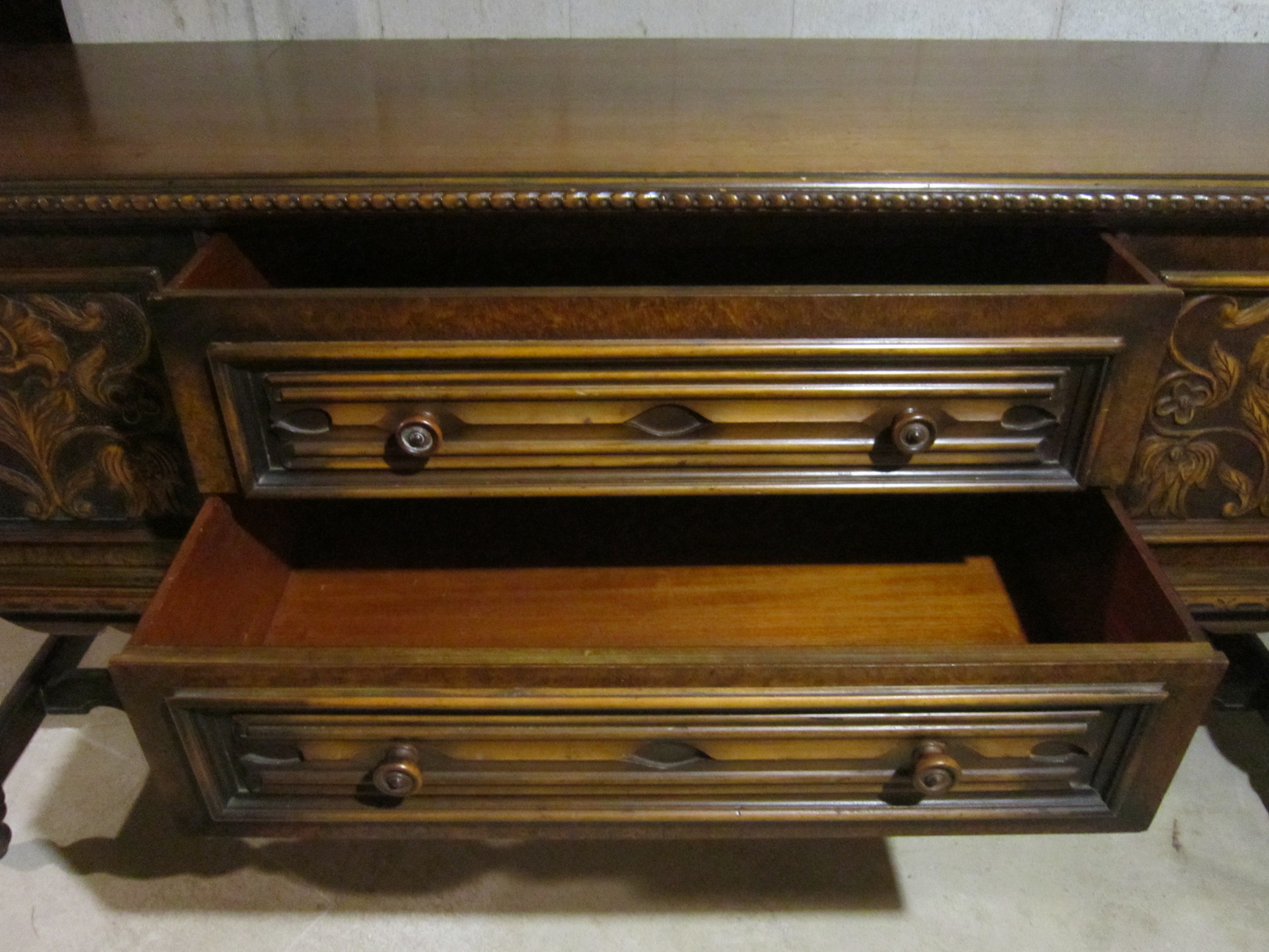 This is a Berkey & Gay piece of furniture and that's about all I know. I'll have to let the photos do most of the talking. There is a piece of trim missing from the top left side. Other than that, it's in decent shape for something that looks pretty old. Please contact me if you have any questions.