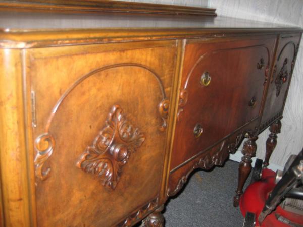 Sideboard is is rather good condition, also have a matching table and 3 of the 4 chairs that I received them with. Table needs work in securing the legs to the base