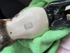 Soft yellowy green, with heavily glazed tiny geometric squares randomly placed. Photo not yet available.