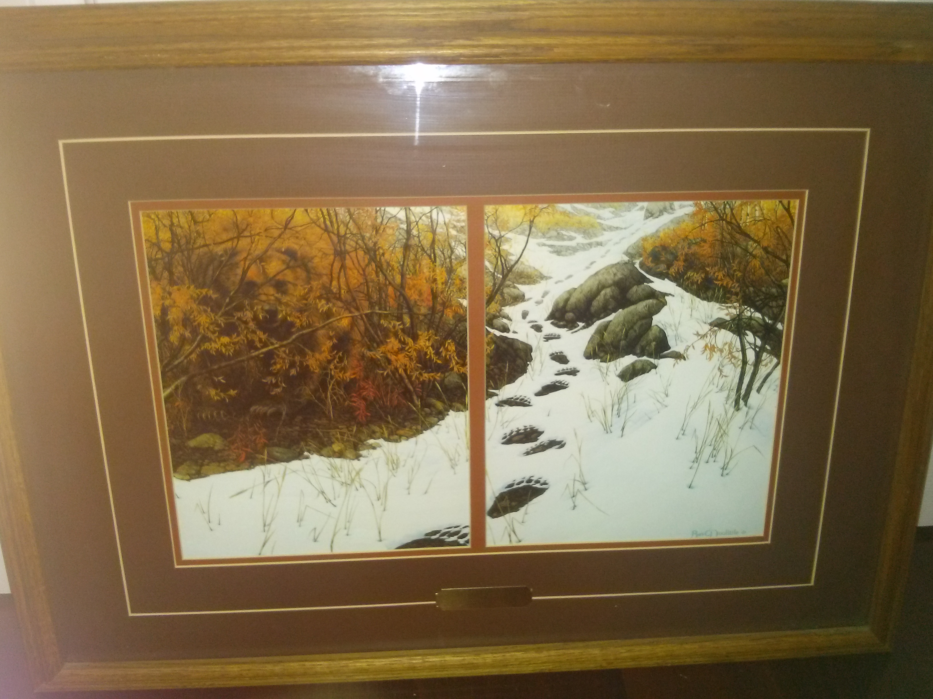 I bought this Bev Doolittle print about 20 years ago.  It has a split mat and a bronze plaque with the name of the print "Double Back" and I have also shown the signature.