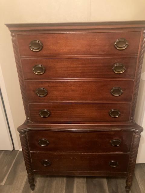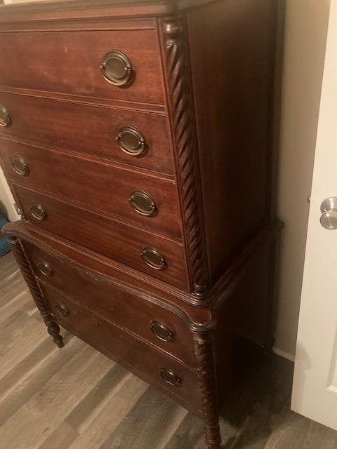 The story I was told was that the dresser came over from Poland during the holocaust. A young bride had escaped to the United States and the family sent the furniture.