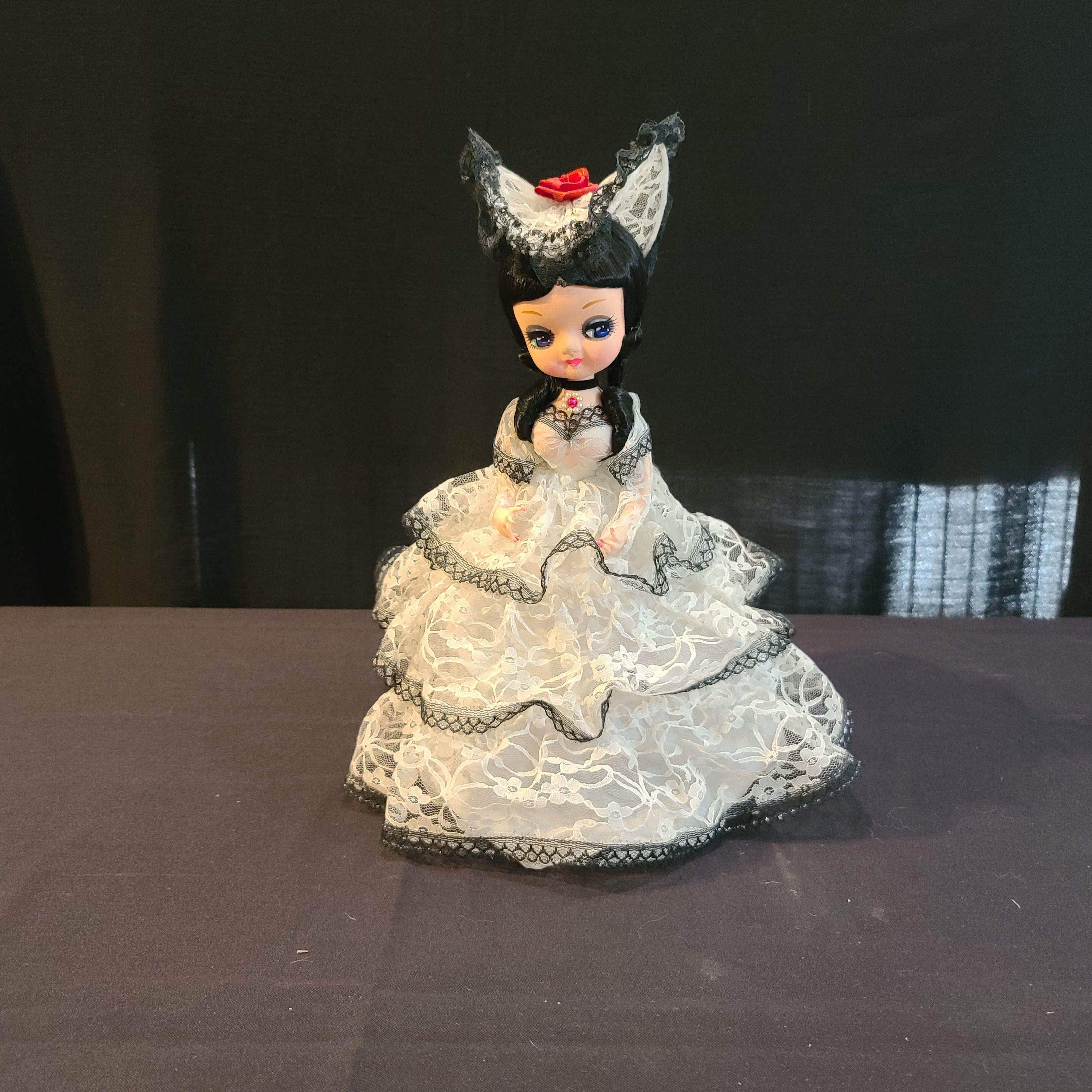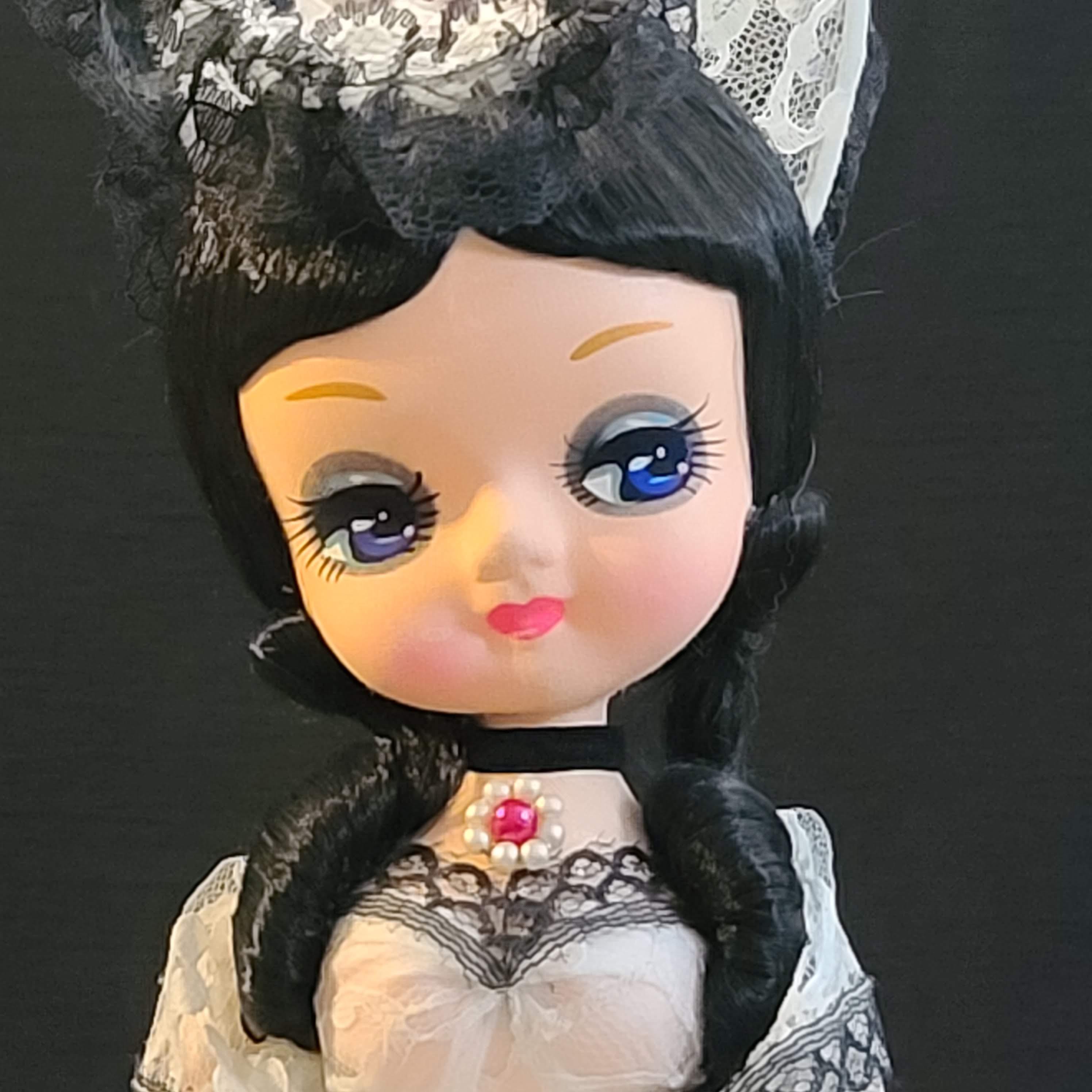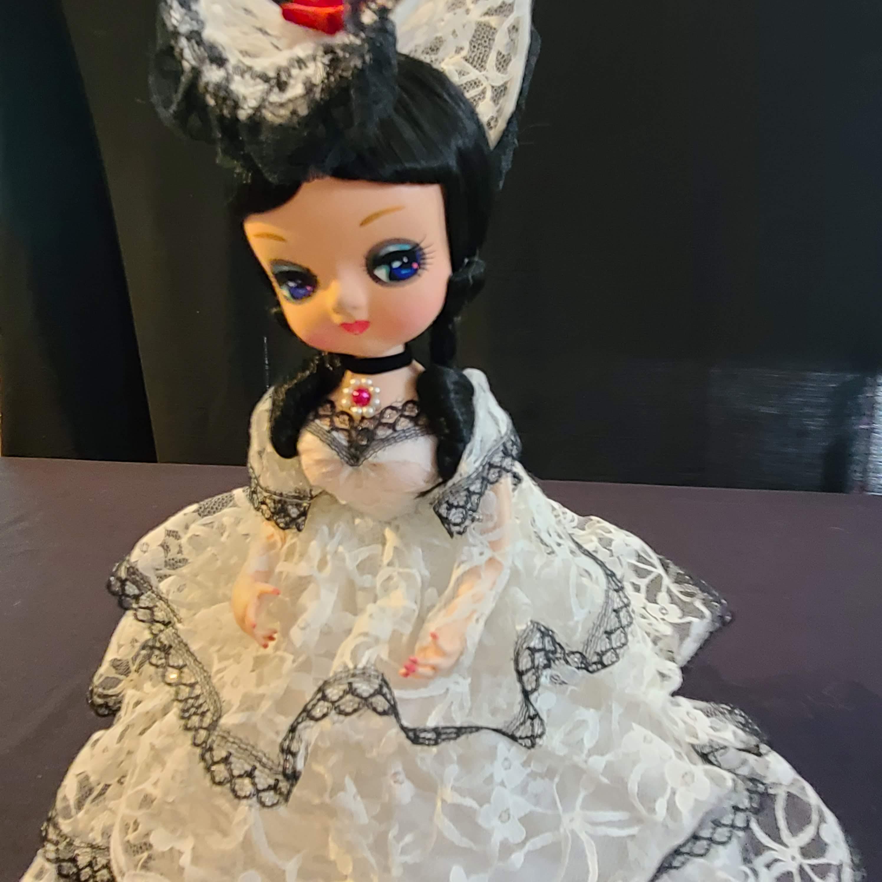 I have a Big Eye Bradley Doll from 1977 dressed in a white lace dress with black trim. I have searched and searched and never found another one like it. I was told it is rare but I don't know how true that is.