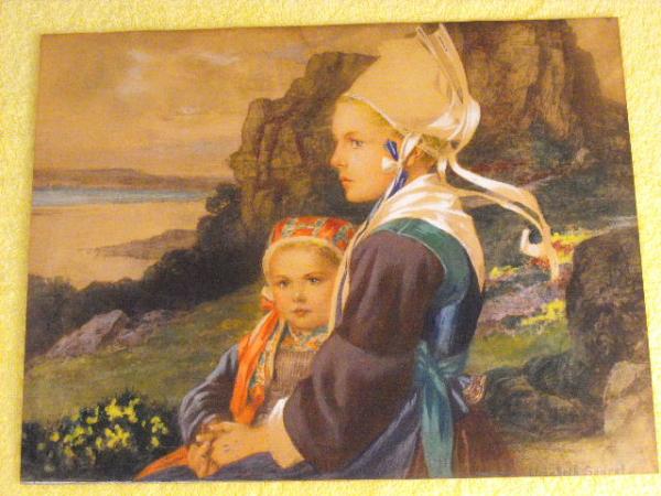 Back of painting is autographed by Elisabeth Sonrel , with the date - '42 Avr 8 - in pencil . Above the autograph is the indication - 1/7 , also in pencil .