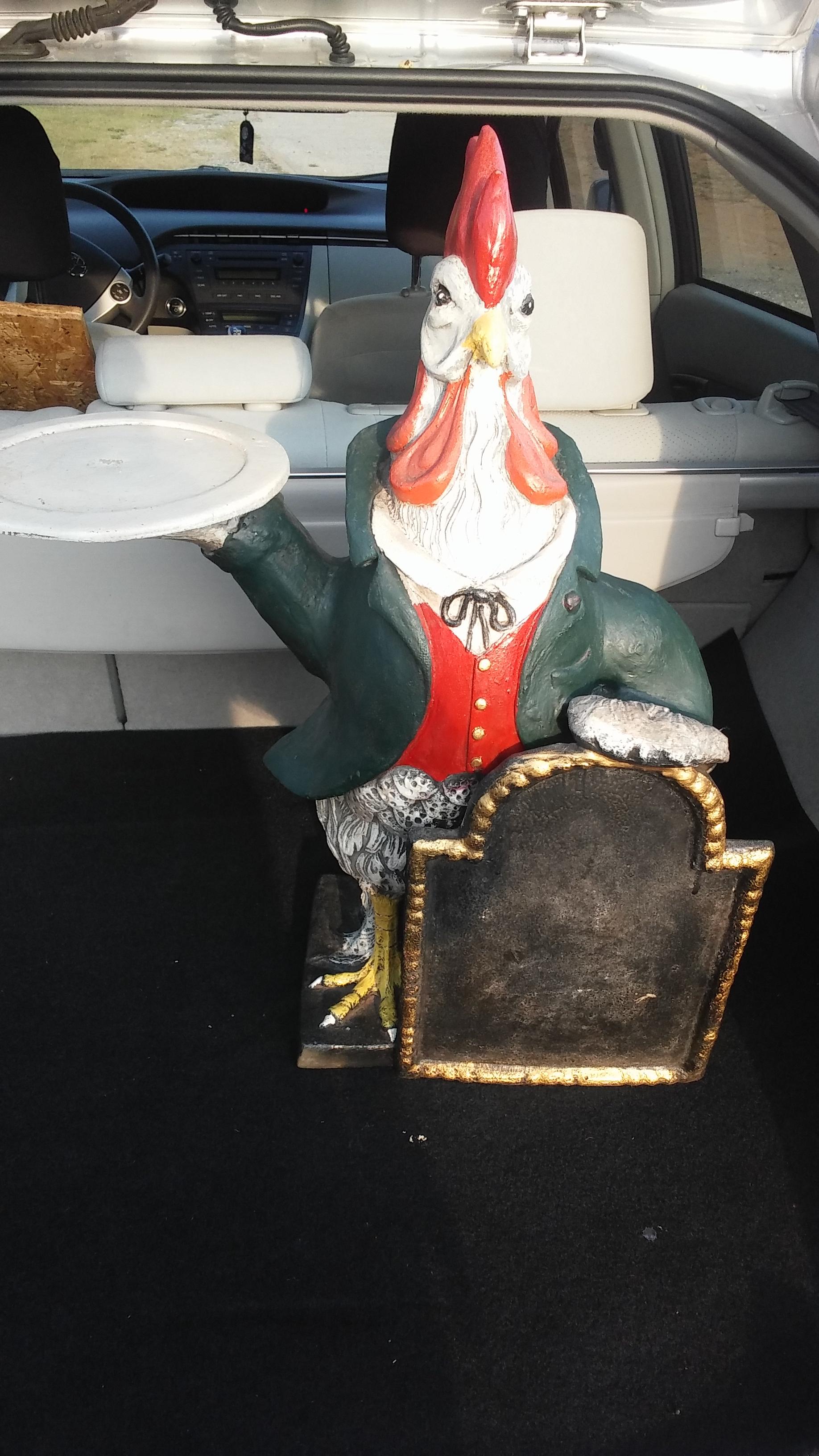 Re: Bill Huebbe Rooster butler statue with menu board and table