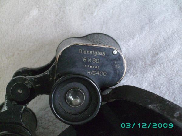 viewing side right "Dienstglas/6 X 30/1998986/H/6400" left "CARL ZEISS/JENA"