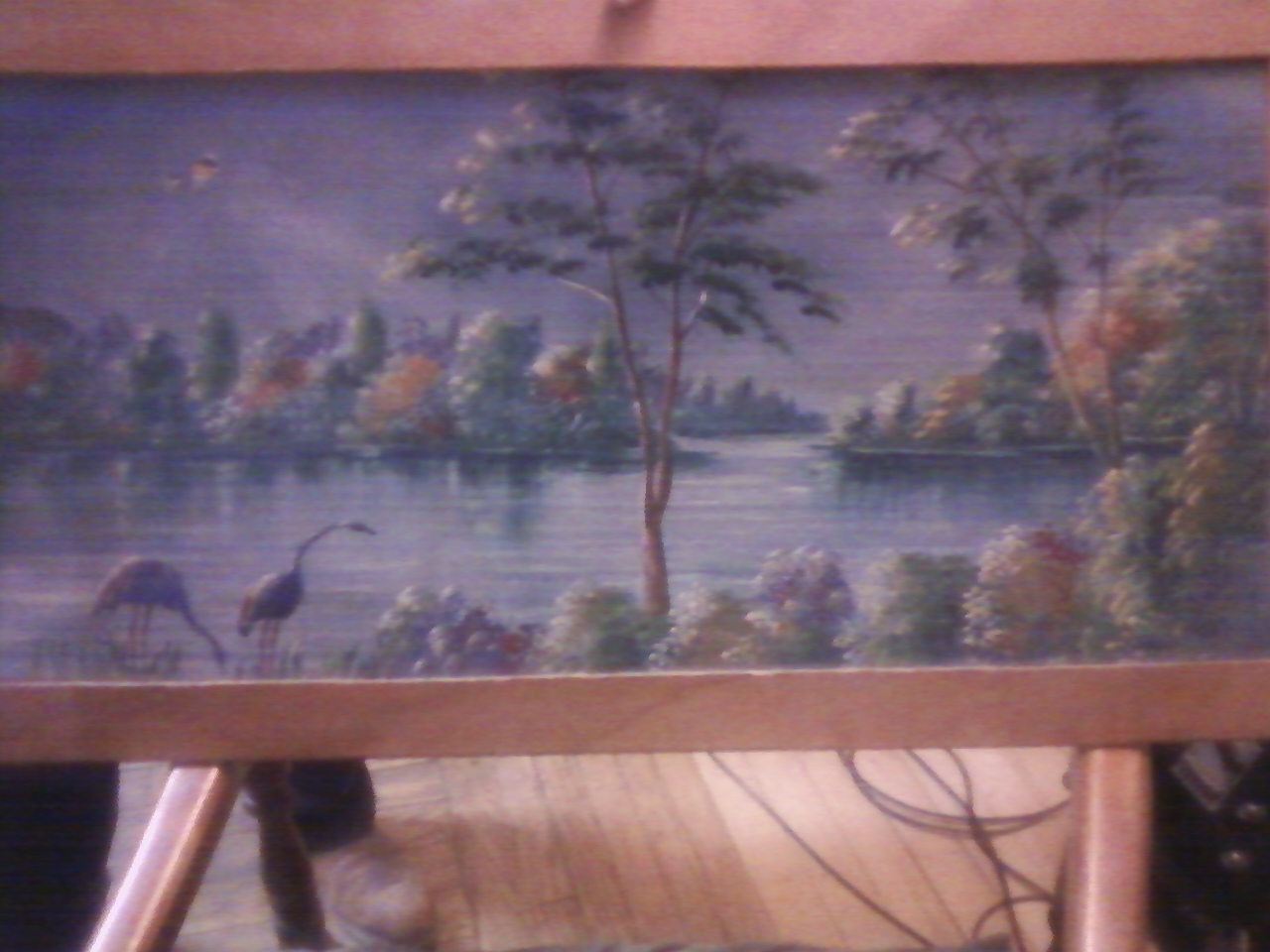 Depression era picture.  Canvas was impossible to get at that time. While watching Antique Roadshow about another painting on cardboard, that is part of what made it so valuable.  I am hoping the same applies here.  Beautiful setting with what appears to be flamingos. Vibrant colors.