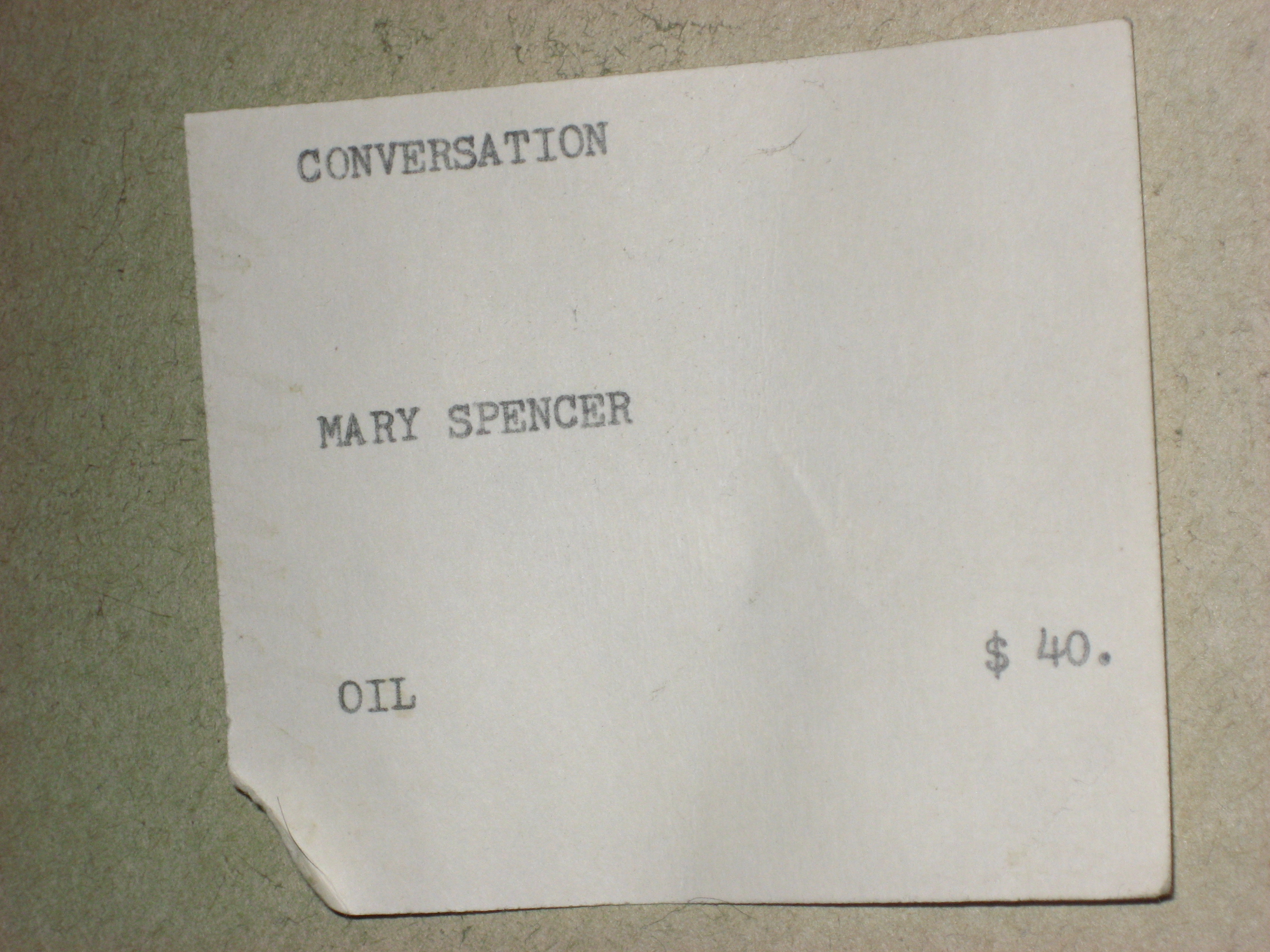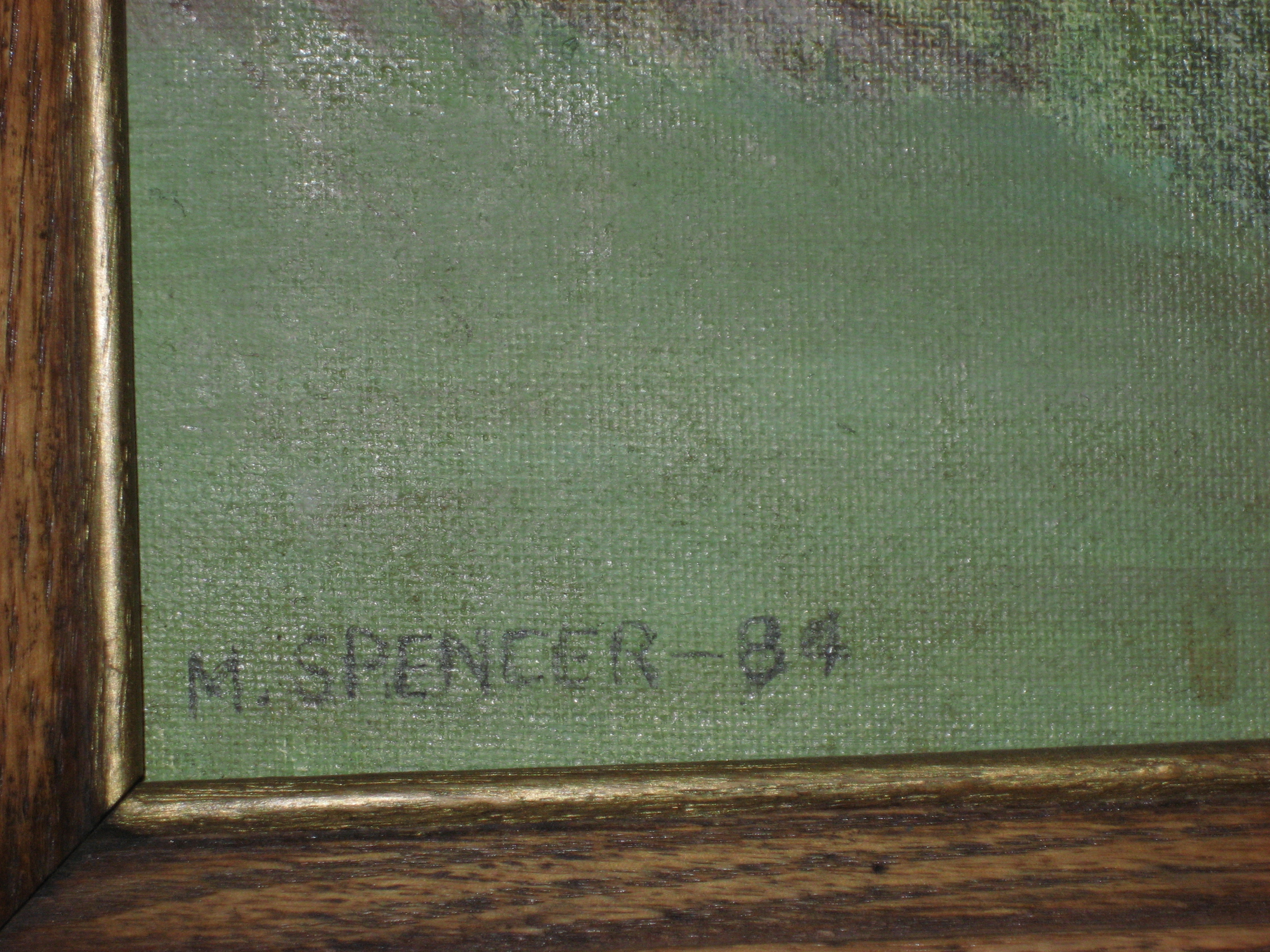 This is an oil painting by mary Spencer . It is 11 3/4 inches wide by 24 inches tall . Was purchased at a garage sale a few years back . The only info I have is what is posted in the pictures . any info and value would be appreciated . Thank you