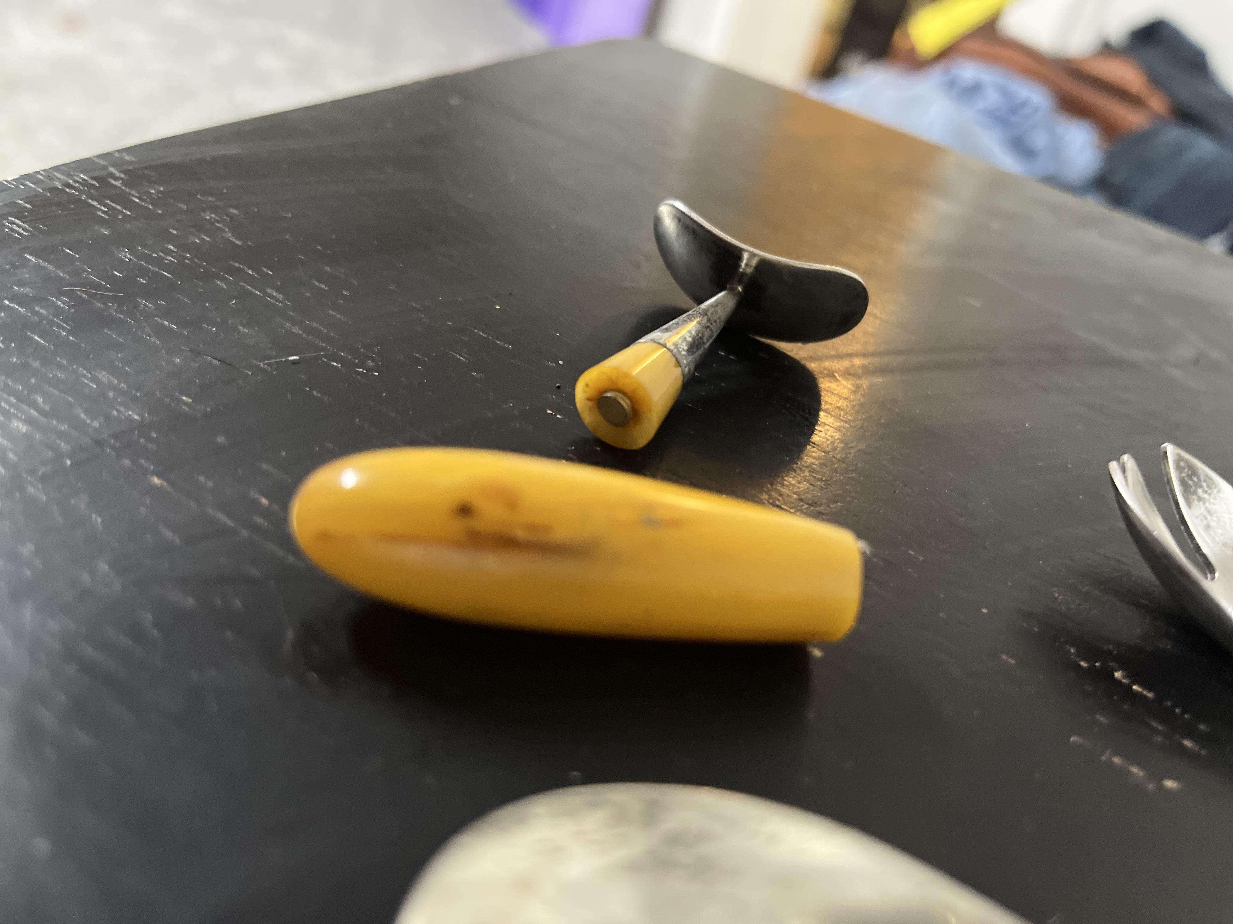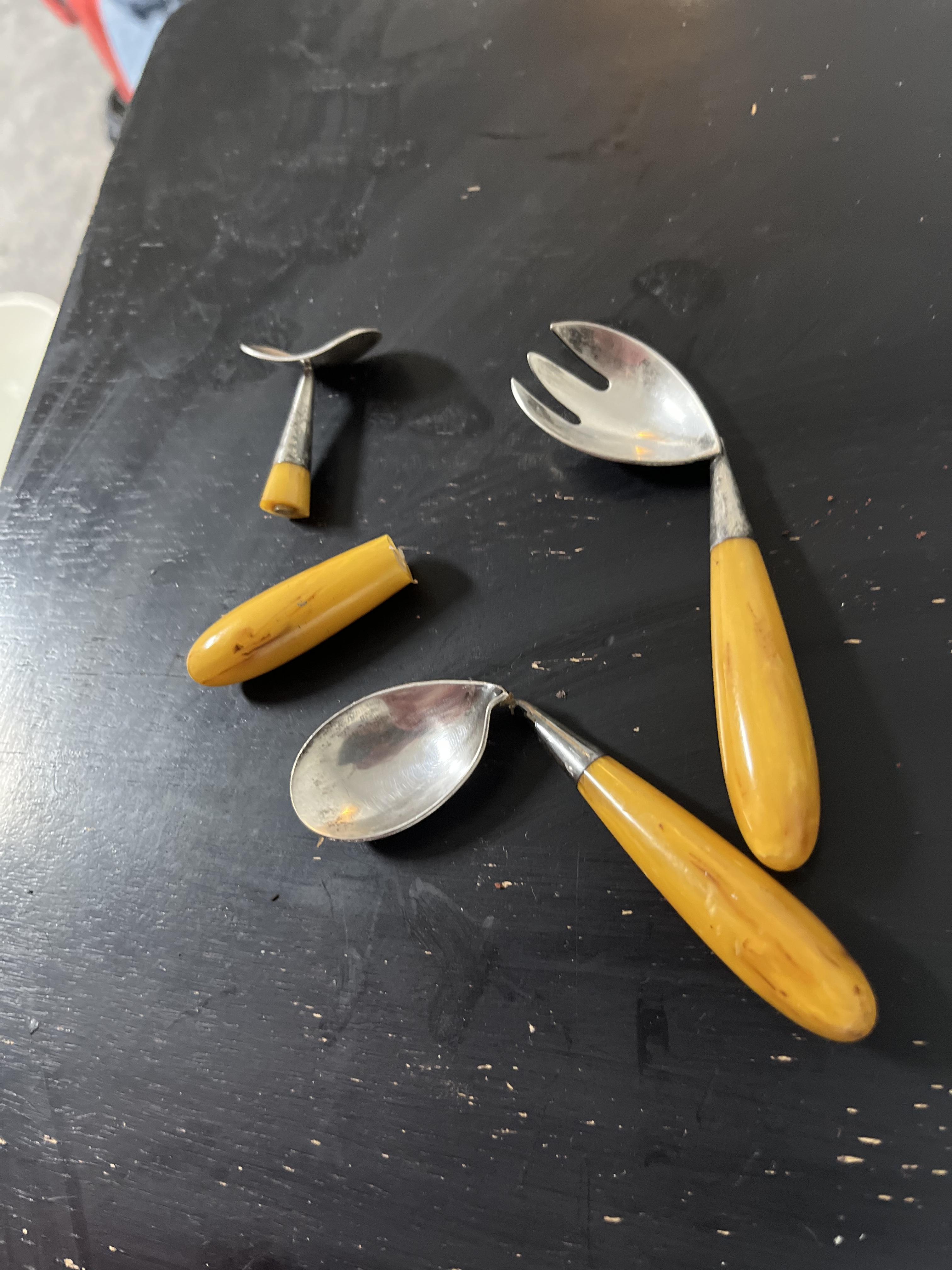 It was handed down to my in my family . I believe it’s” late 1800 or early 1900 birks silver and ivory three piece curved baby feeding set