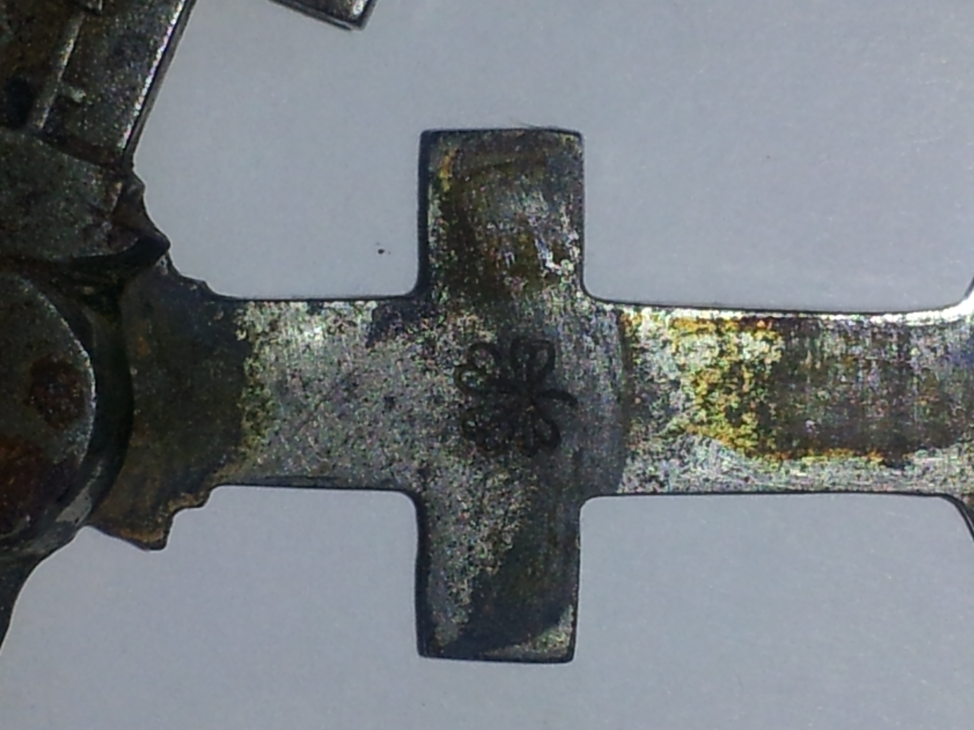 A little four leaf clover on the inside of the pivoting part of the handle
