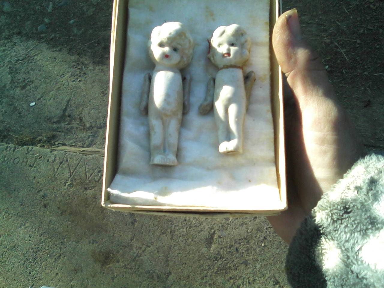 About 2 inches.Japan stamp on one foot head wasd glued back on.with 1 doll