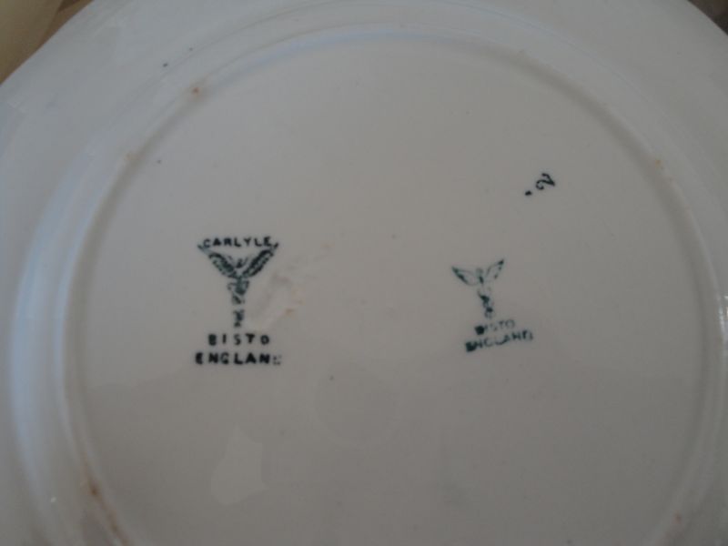 Any time you find a country of origin marking on pottery it generally post dates 1890. In 1891 Duncan Watson Bishop and John Stonier created a new company trade mark BISTO, using the first letters of their surnames. The marks was used until about 1939, the plate's worth about $25.00