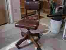 bl Marble chair 123 1/2 was part of a design line known as "Correct Posture Chair". It was touted in the catalogues "Less fatigue - Fewer errors - Better work." It could be ordered in Walnut, Imitation Walnut, Imitation Magogany (stained), Marblecote (painted) and in quarter oak. The line was manufactuted from 1946 until it was discontinued in 1955. A 1946 catalogue says "when foam rubber is available again" indicating that it was restricted during the war years. If yours has foam rubber it would have been manufactured later in the production period.