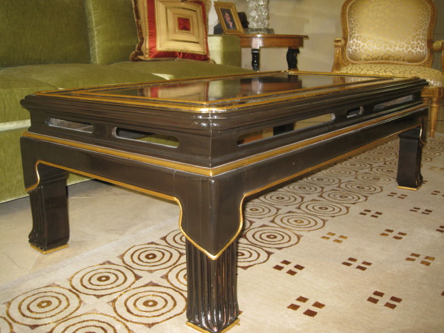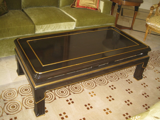 - Black lacquer cocktail table with 24K gold trim