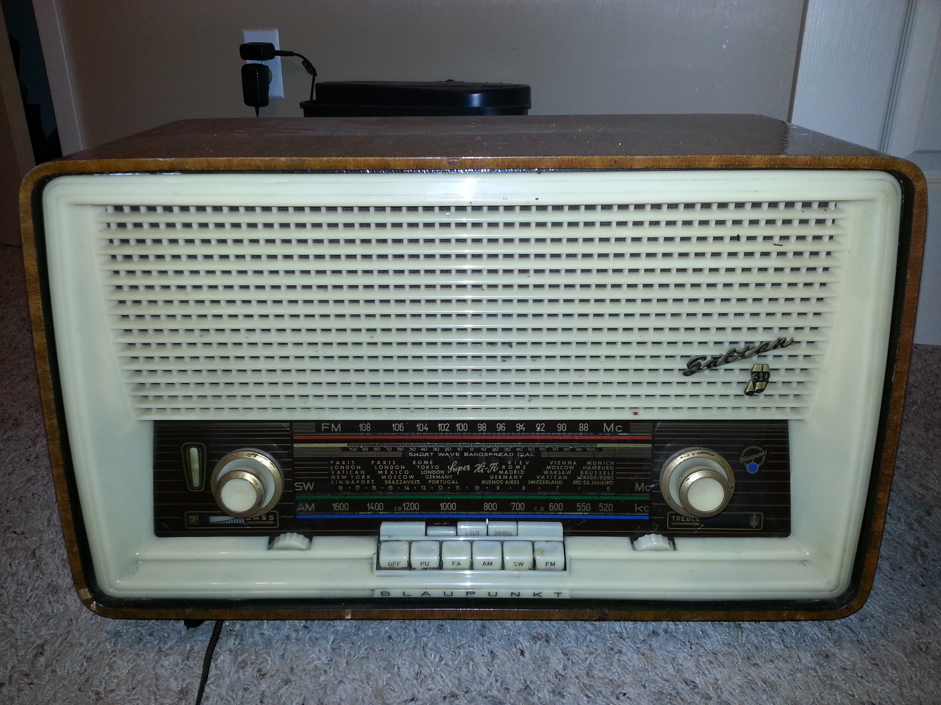 Blaupunkt Sultan tabletop radio made in Germany, still works. Not sure when it was produced. Wood cabinet looks nice but could probably be refinished. AM, FM & Short Wave