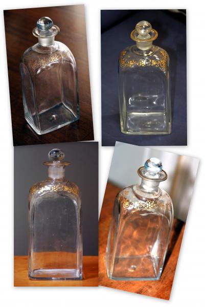 This is a blown-glass square decanter, probably for whisky. It has been in my family for generations.