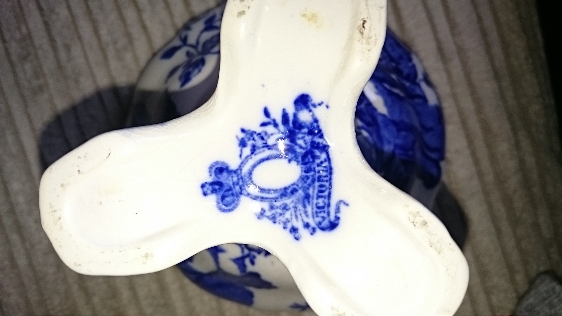 Blue and white pottery, stamped with Victoria on the Base but not stamped ironstone? Thinking a modern repro?