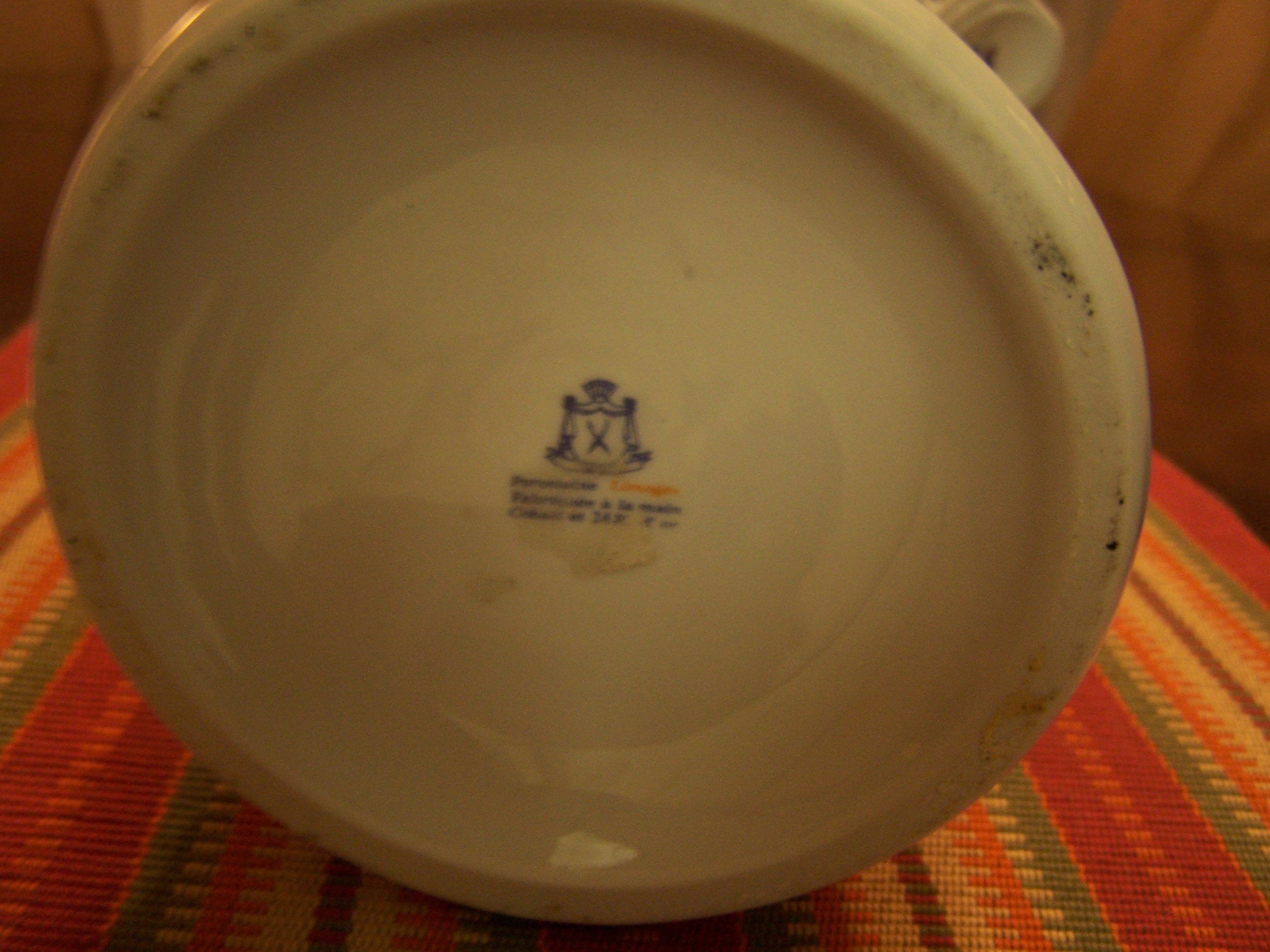 The stamp on the bottom reads Porcelaine Limoges Fabriquee a la main Cobalt et 24K d'or