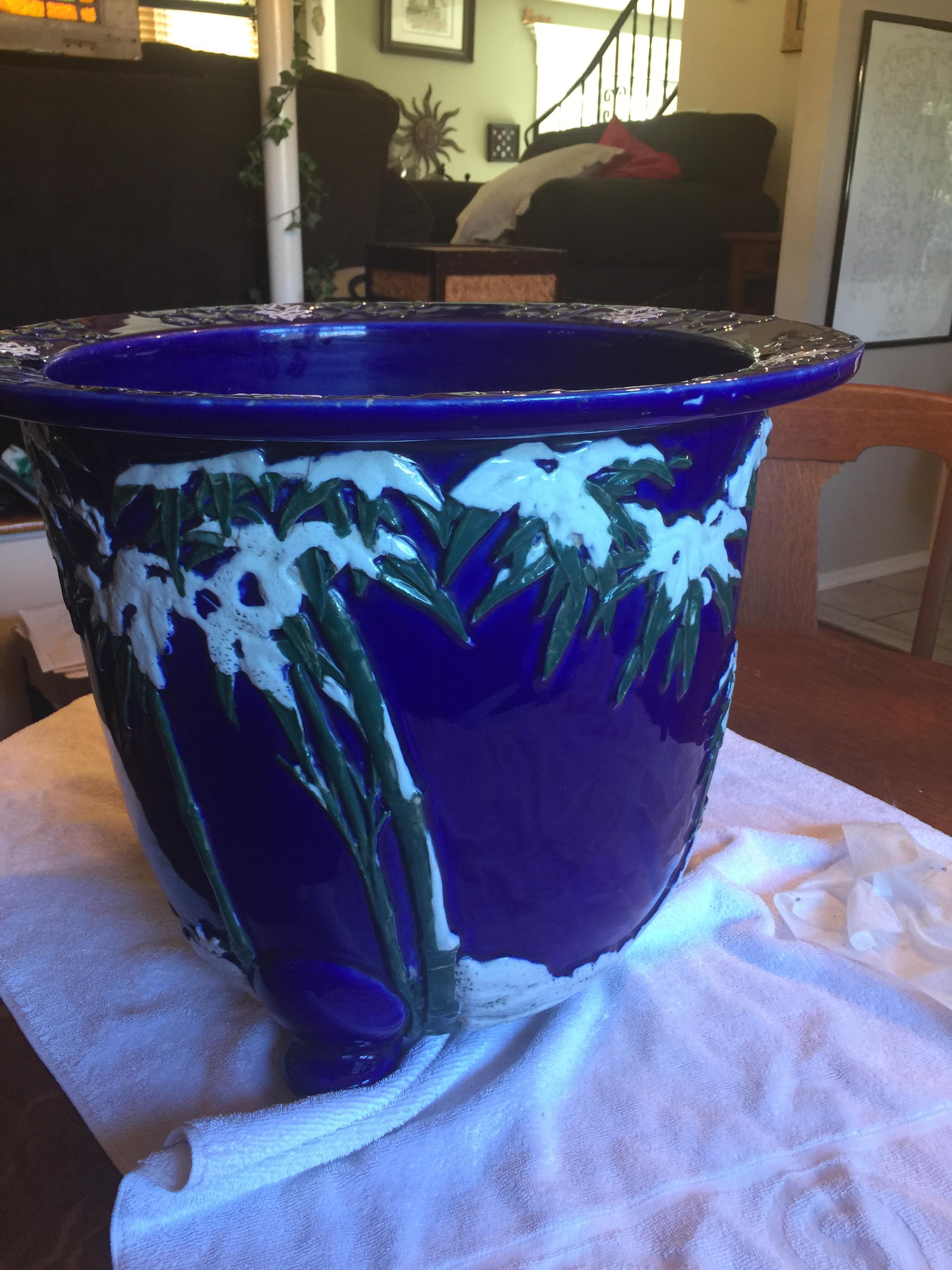 Blue planter given to me by my grandmother... would love to know more about this beautiful thing!