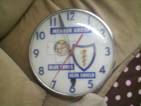 Good condition just slightly discolored from age, original wiring in good condition, lights and clock work, sticker on back says Pam Clocks "Union Made"