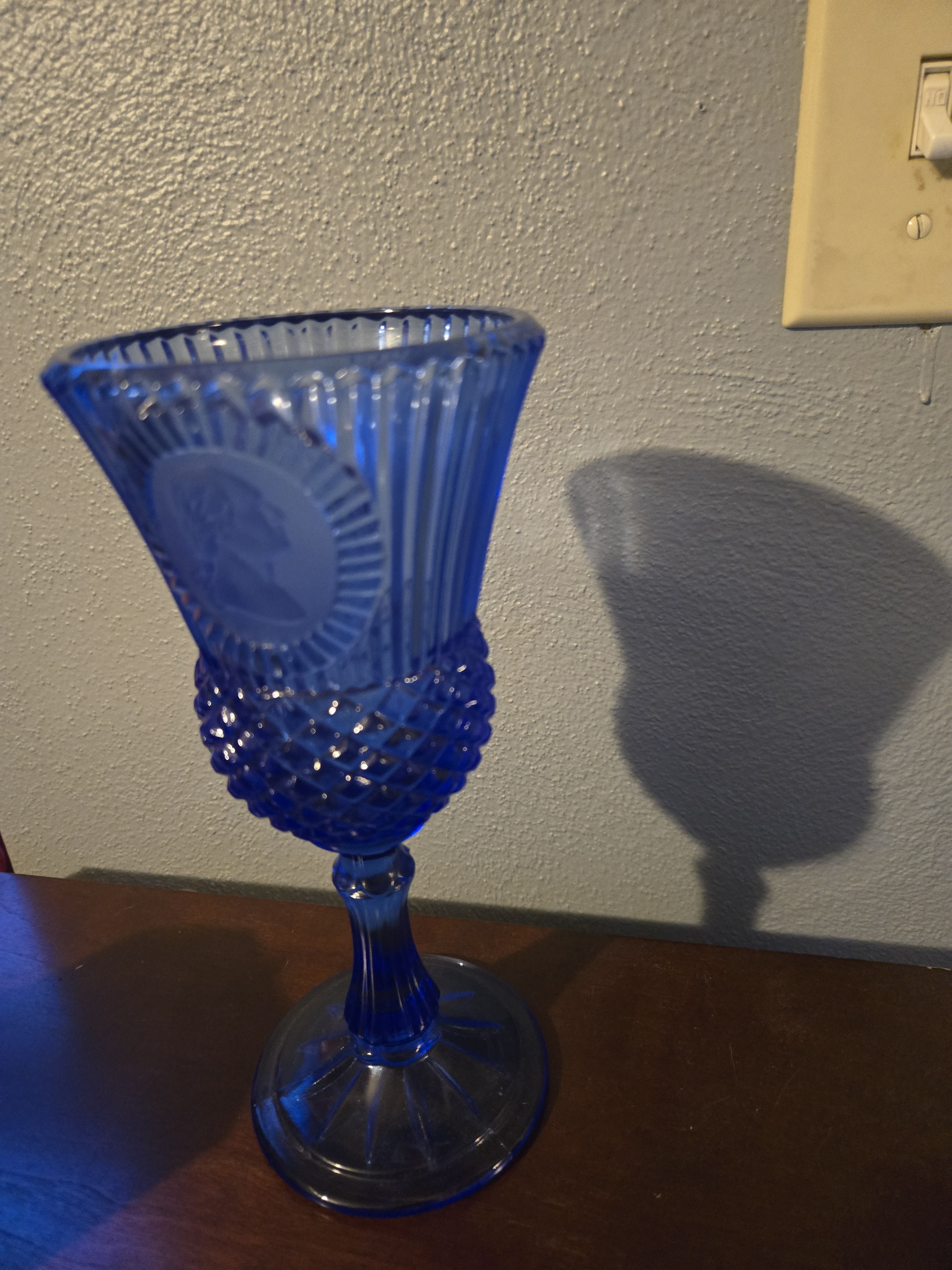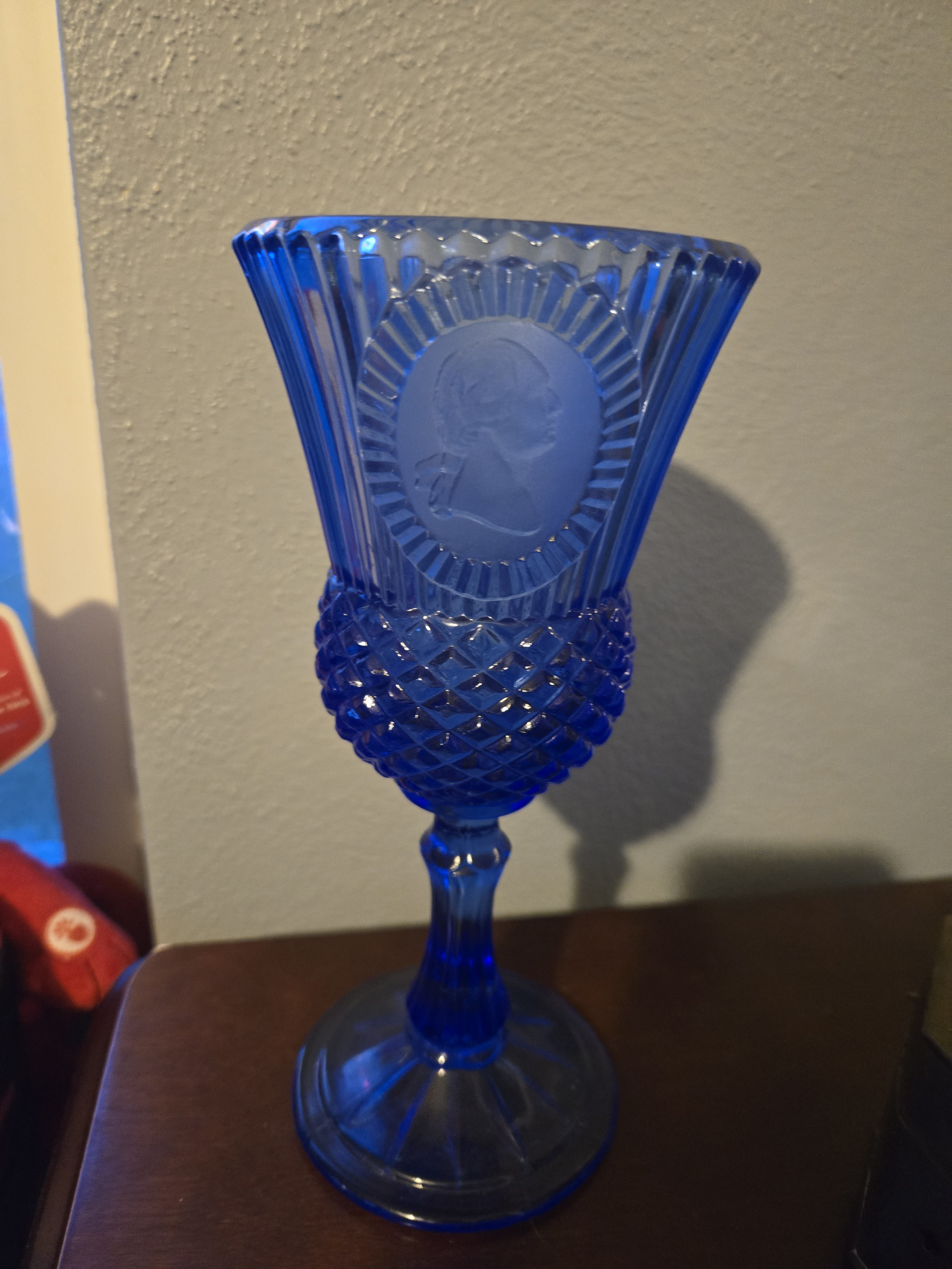 Blue Glass Goblet Featuring George Washington